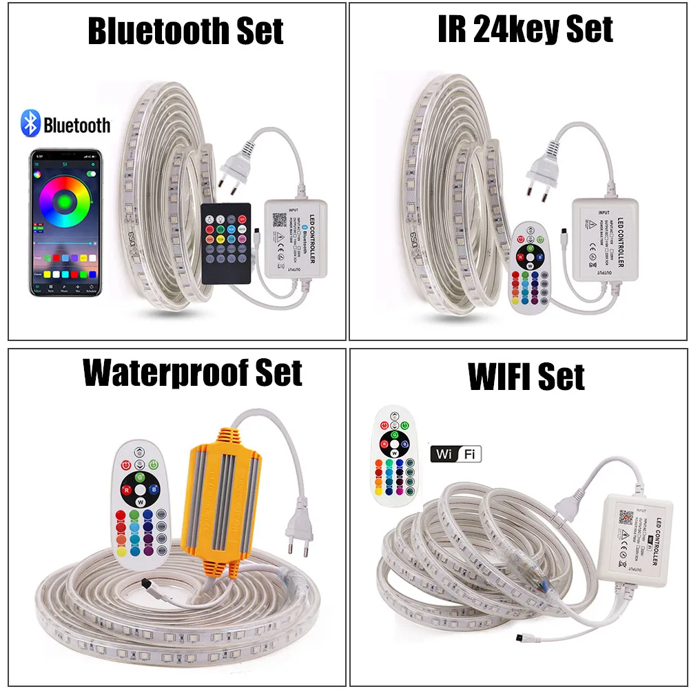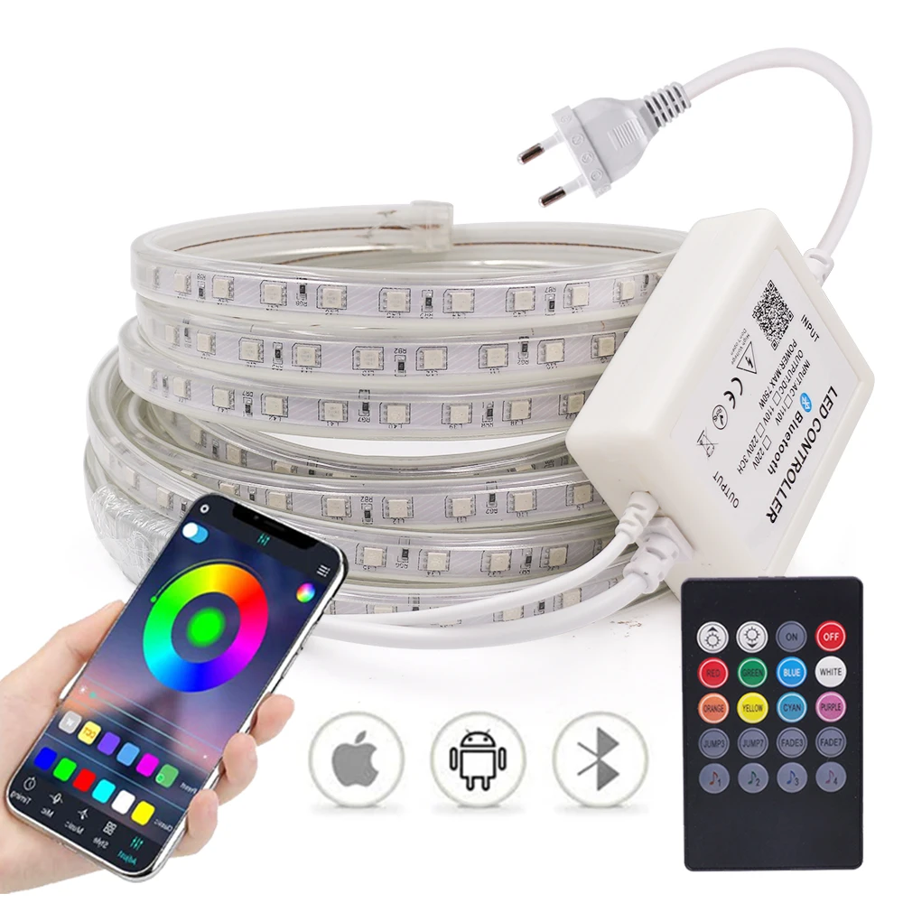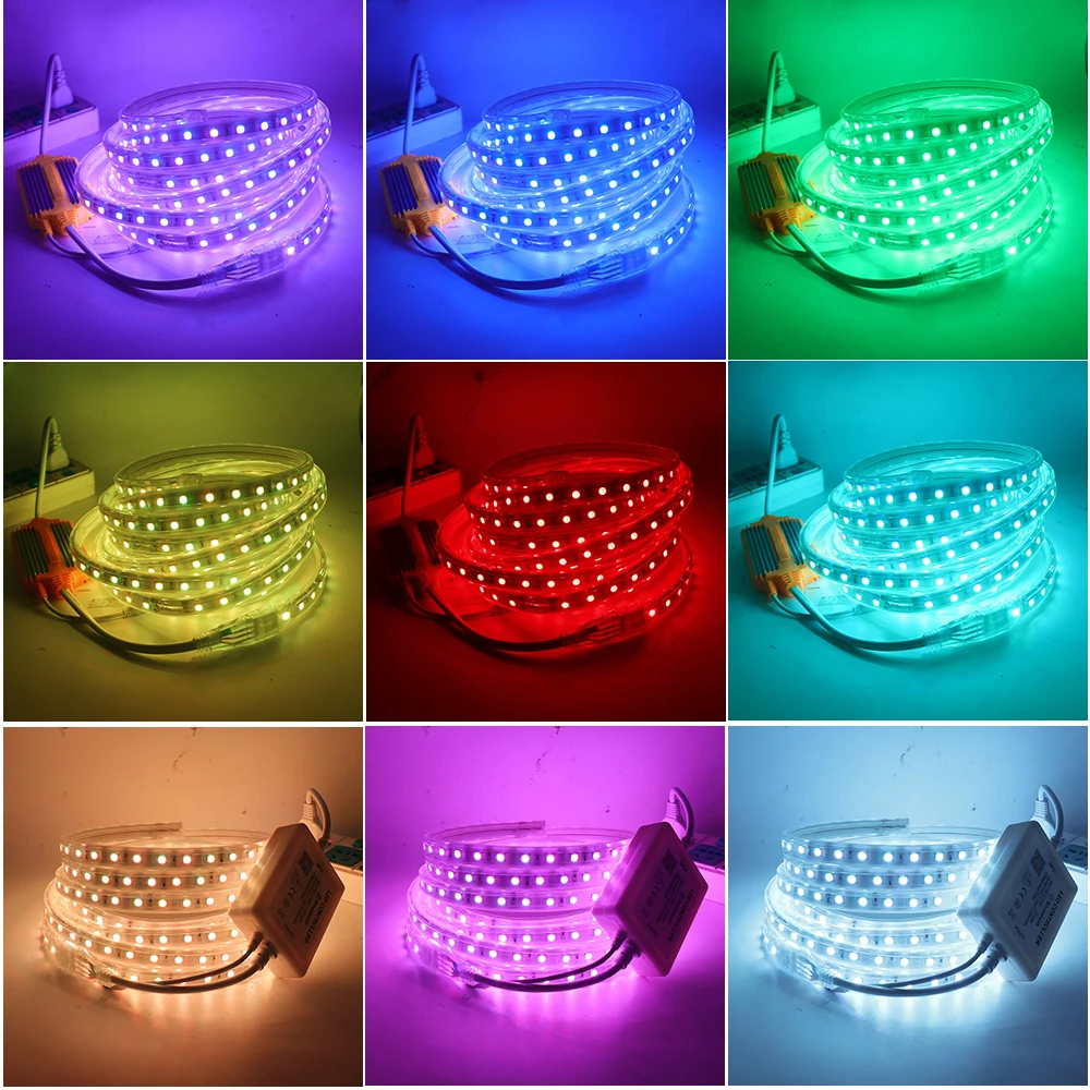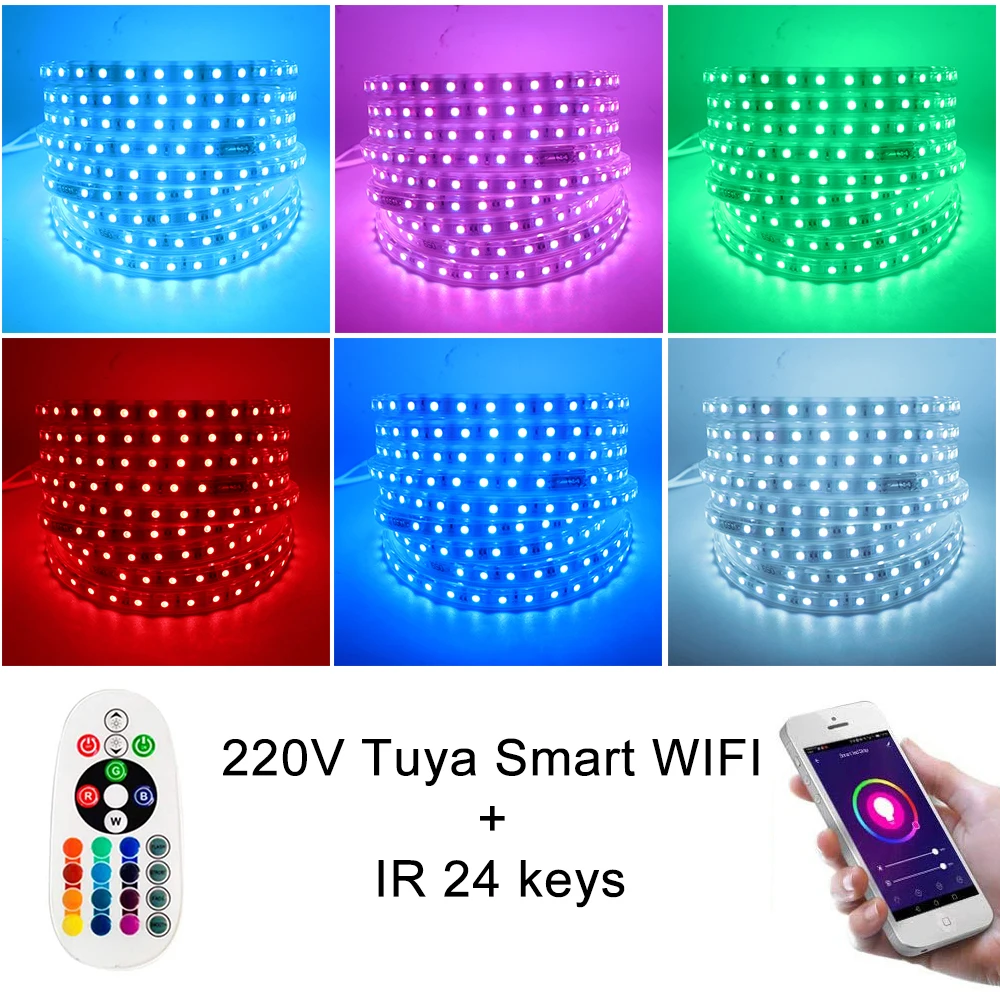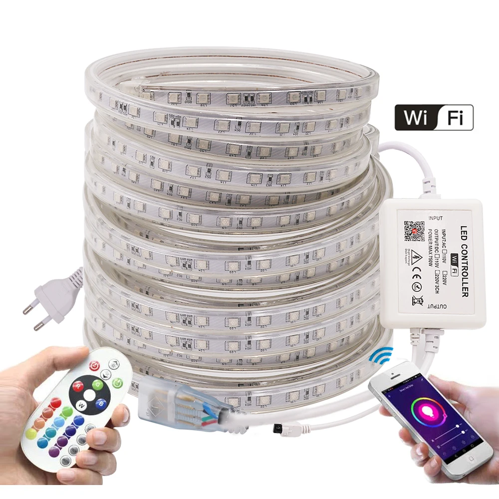 Светодиодная лента 5050 RGB с евровилкой, 220 В, 240 в, водонепроницаемая, Wi-Fi, Bluetooth, управление белымтеплым белым светом, 60 светодисветодиодный, sm, гибкая лента светодиодный светодиодсветильник Па