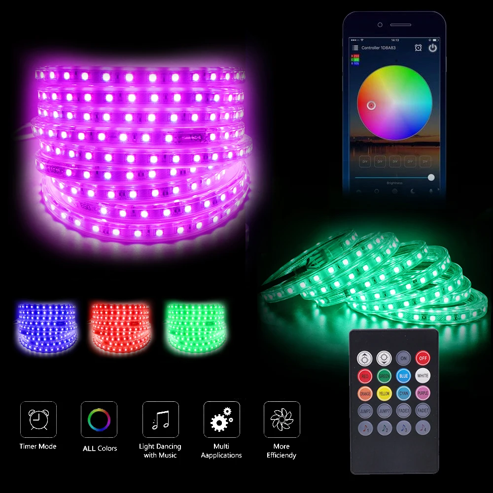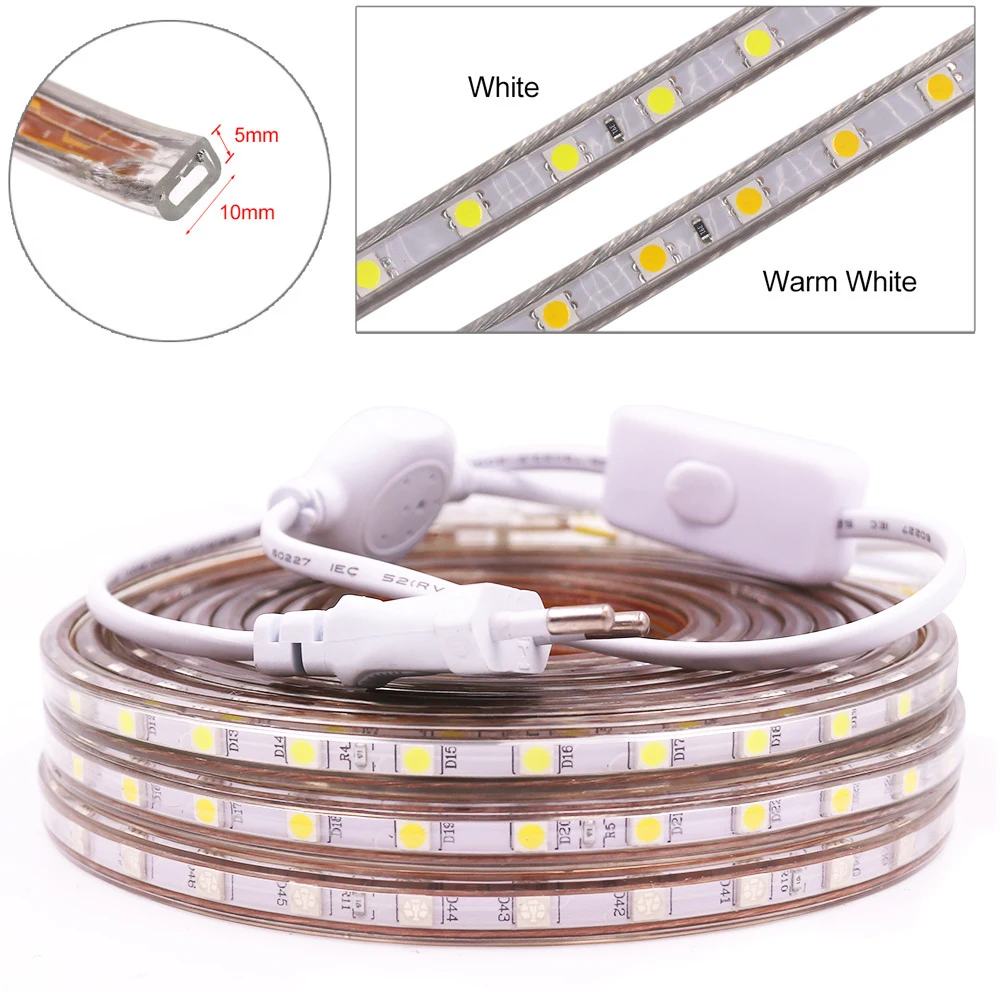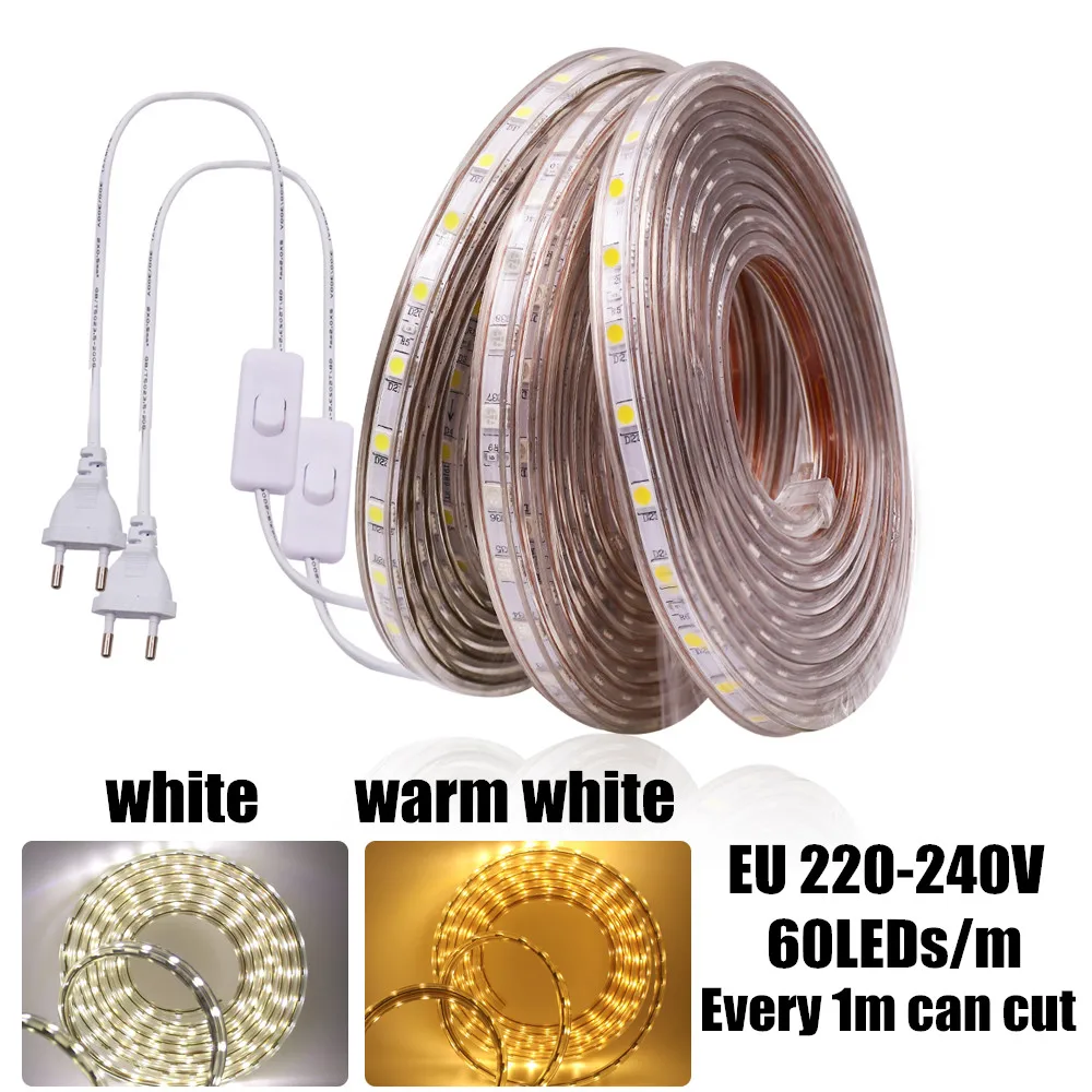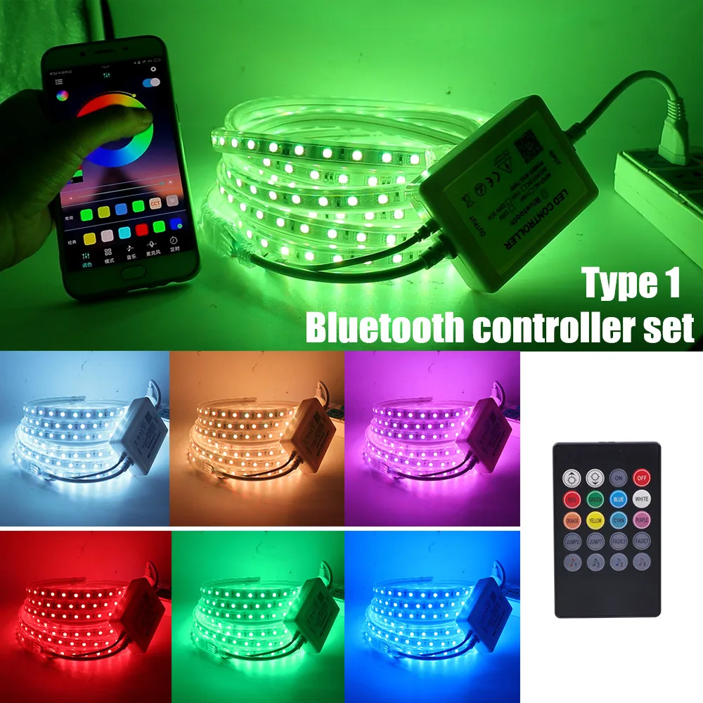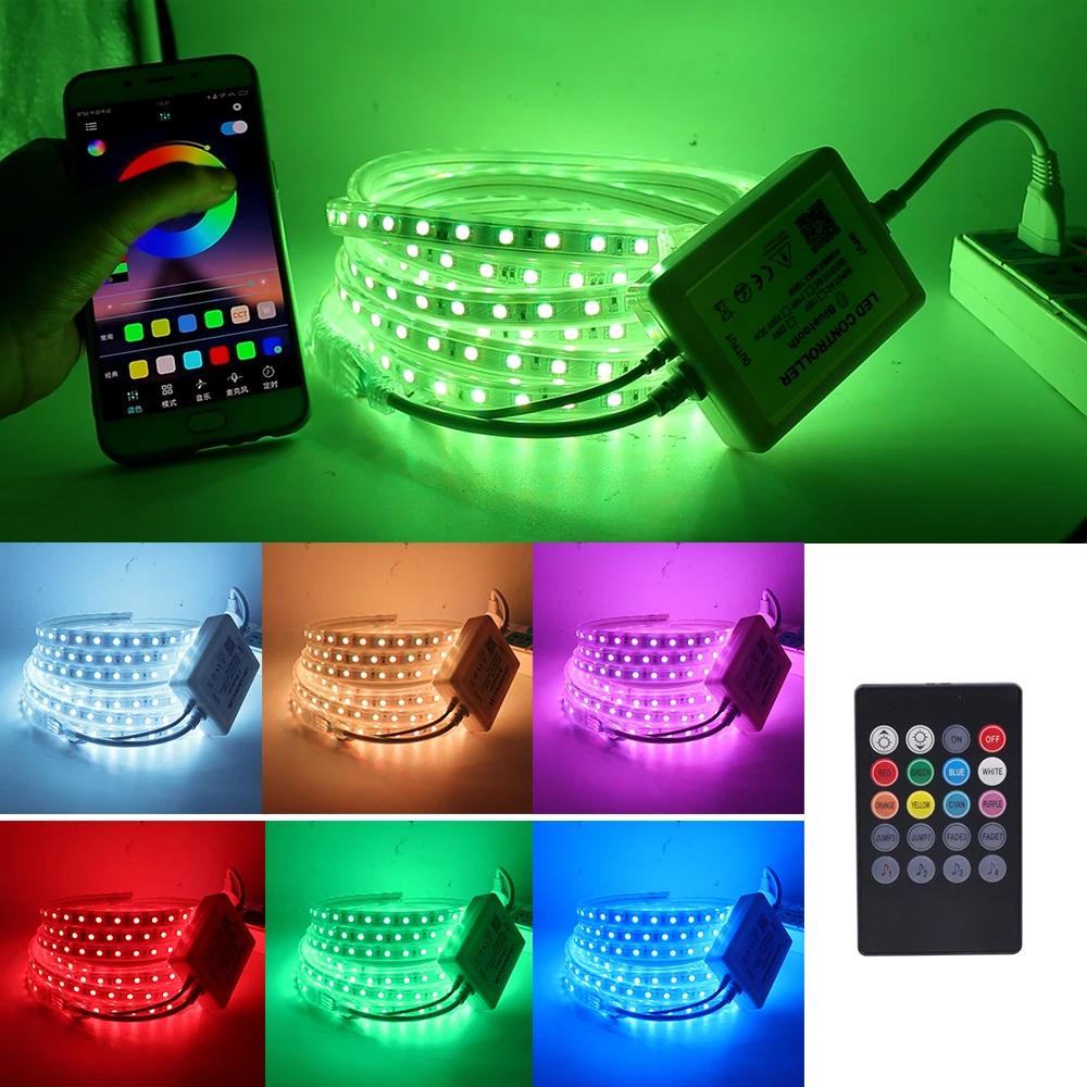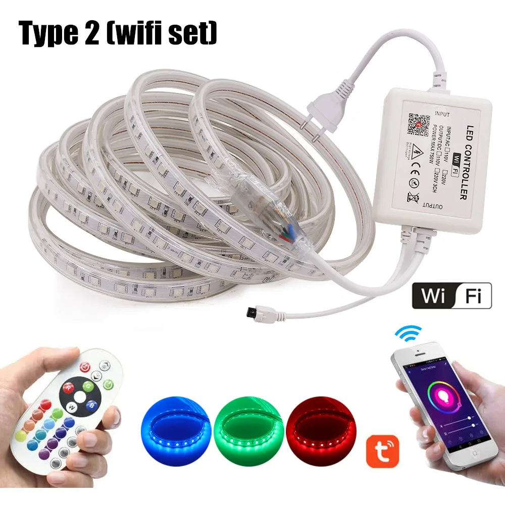 Светодиодная лента 5050 RGB с евровилкой, 220 В, 240 в, водонепроницаемая, Wi-Fi, Bluetooth, управление белымтеплым белым светом, 60 светодисветодиодный, sm, гибкая лента светодиодный светодиодсветильник Па