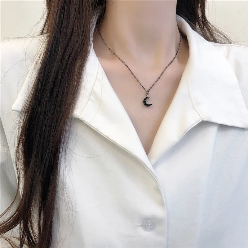 Готика простой стиль цветочный принт черной луны Кулон ожерелье в Корейском стиле темно подвеска в виде полумесяца для женщин и мужчин, для девочек, воротник, ювелирное изделие, подарок 2021 тенденция