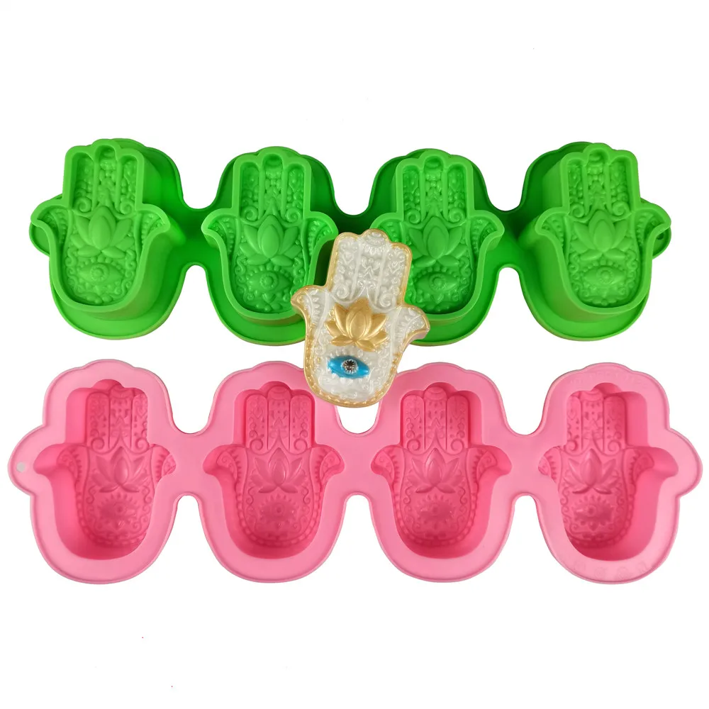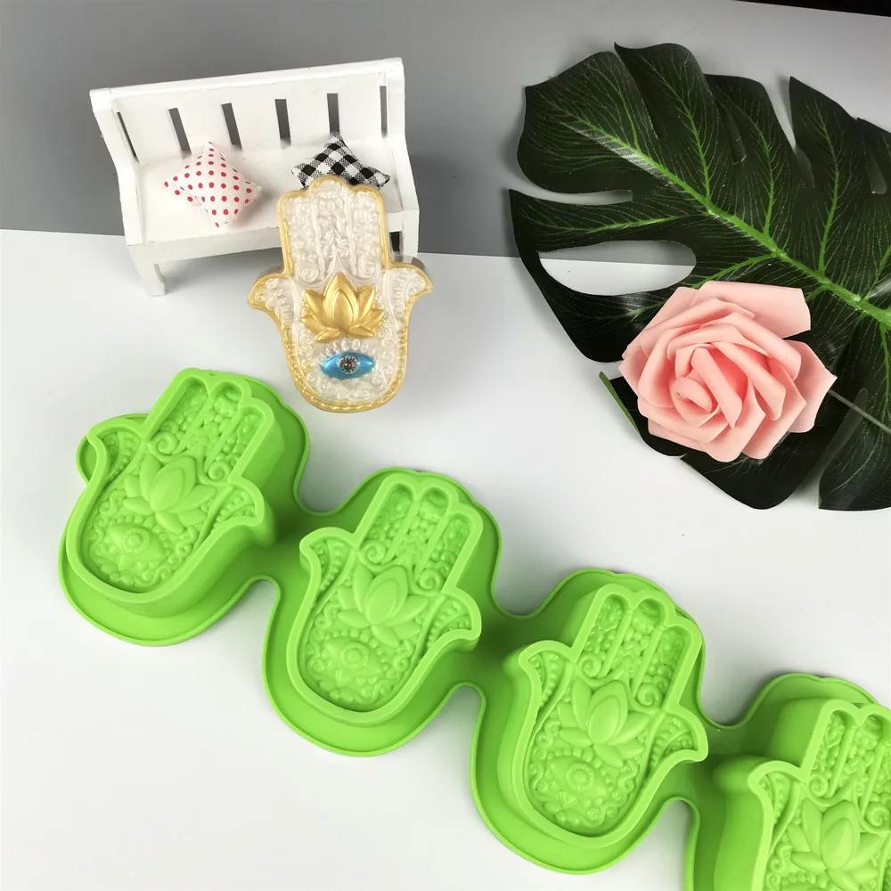 Силиконовая форма для мыла "Рука Фатимы", с четырьмя отверстиями, глаз Божий, силиконовая форма для ручной работы, форма для торта с цветком бергамота, форма для свечей