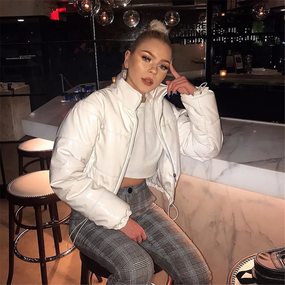 2020 для женщин из хлопка черно-белого цвета с хлопковой подкладкой на зиму, пальто-парка Теплые повседневные утепленные укороченный куртка-бомбер с осень-зима Mujer