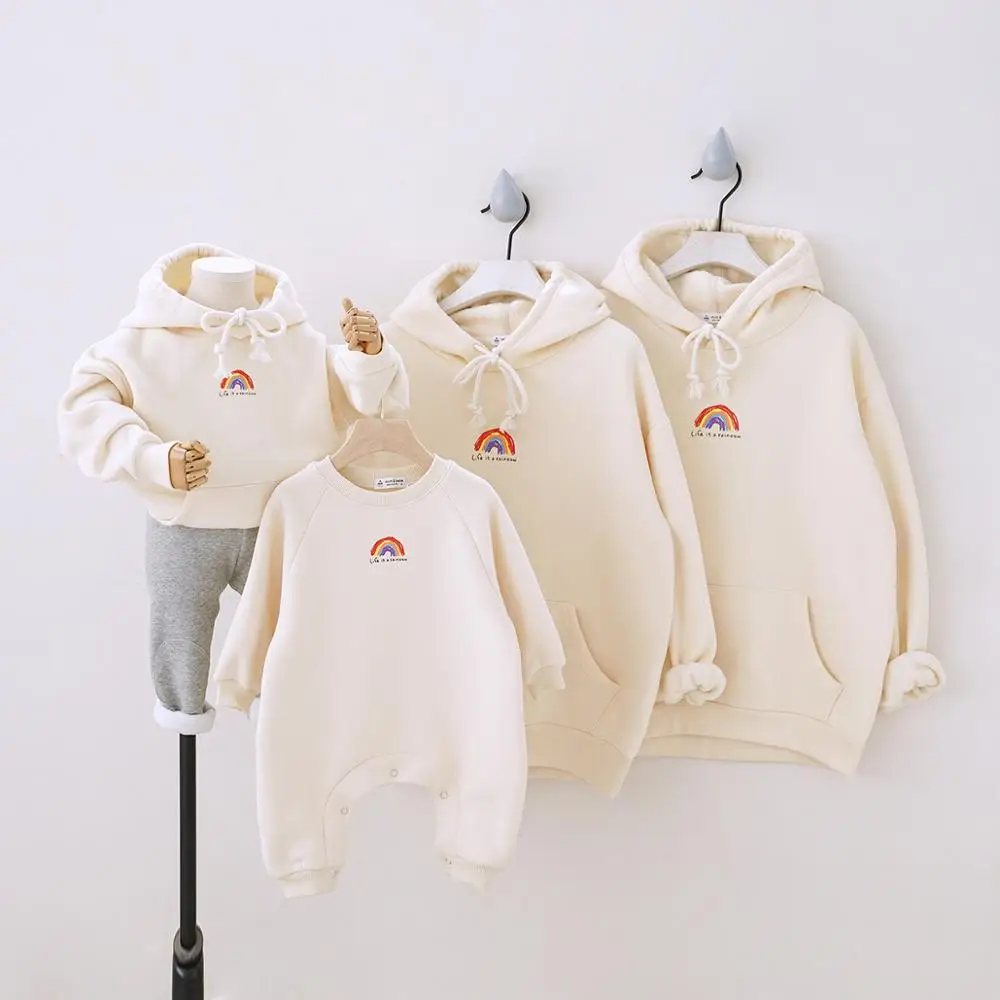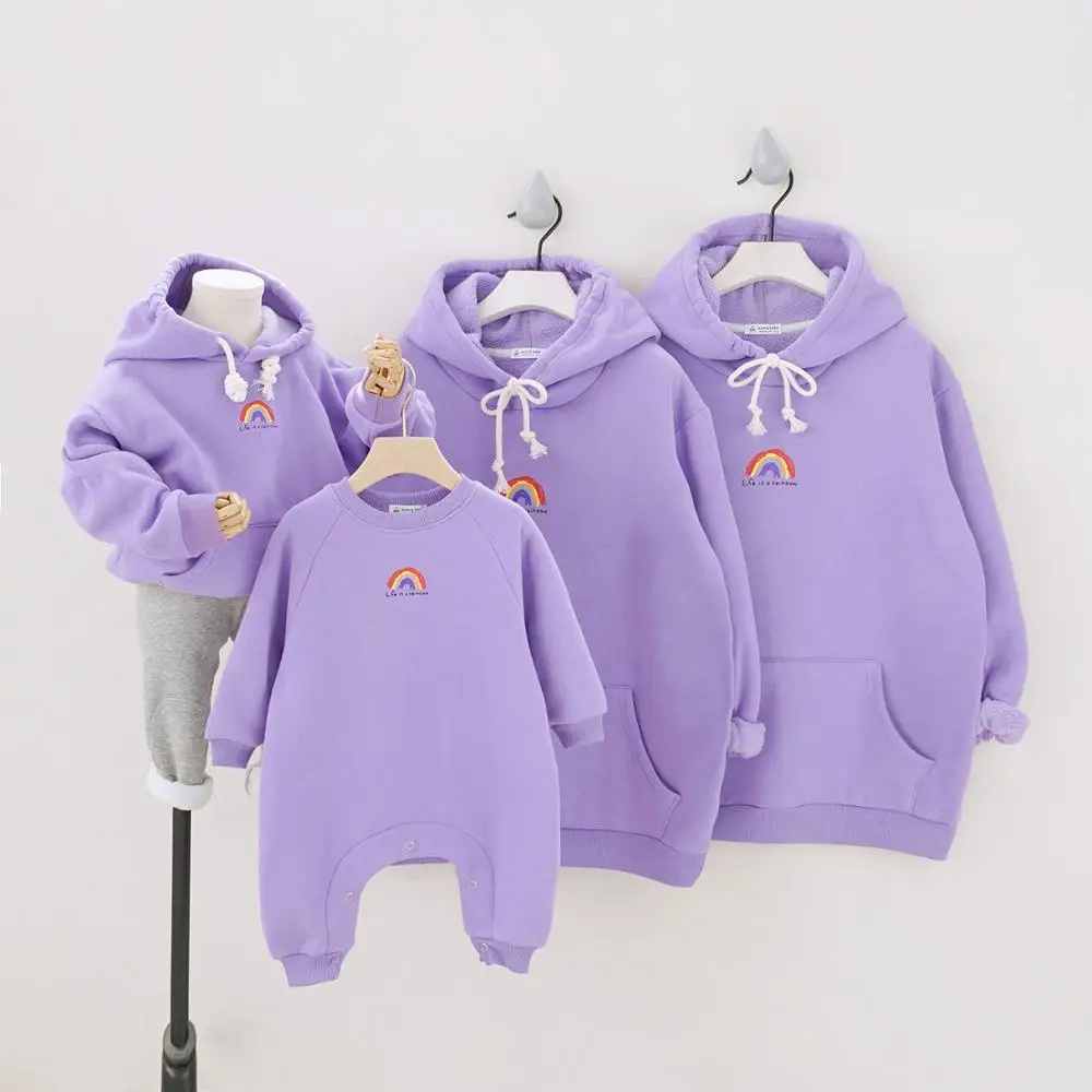 Радужная зимняя парная одежда с капюшоном для всей семьи, вельветовый свитшот, рубашка для родителей и детей, Детский длинный комбинезон, парная одежда, 2021