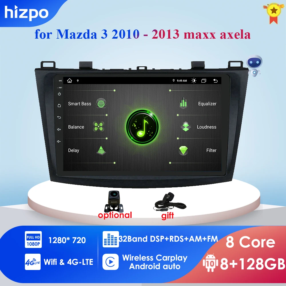 Автомагнитола 3G + 32G Android 10 4G LTECar, мультимедийный видеоплеер для Mazda 3 bk 2010-2013 Mazda3, навигация GPS, 2 din, фотокамера с микрофоном
