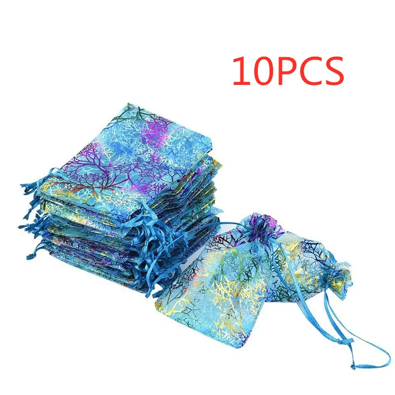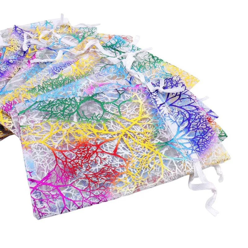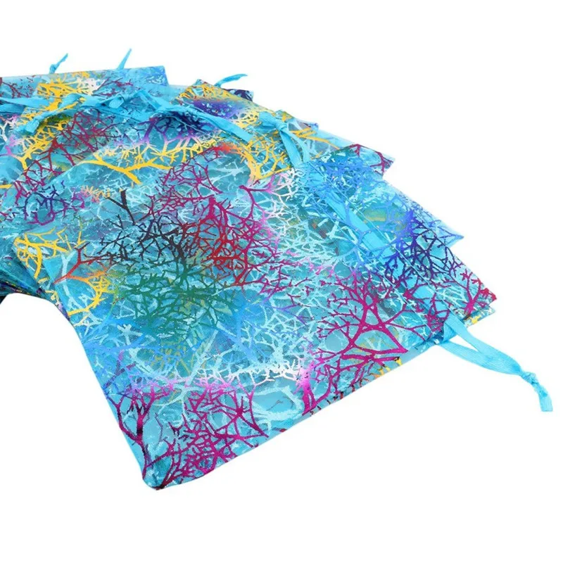 10 шт.лот 7x9 см 9x12 см 13x18 см красочные мешки из органзы, сумки для упаковки ювелирных изделий, свадебные подарочные мешки, мешки на шнурке