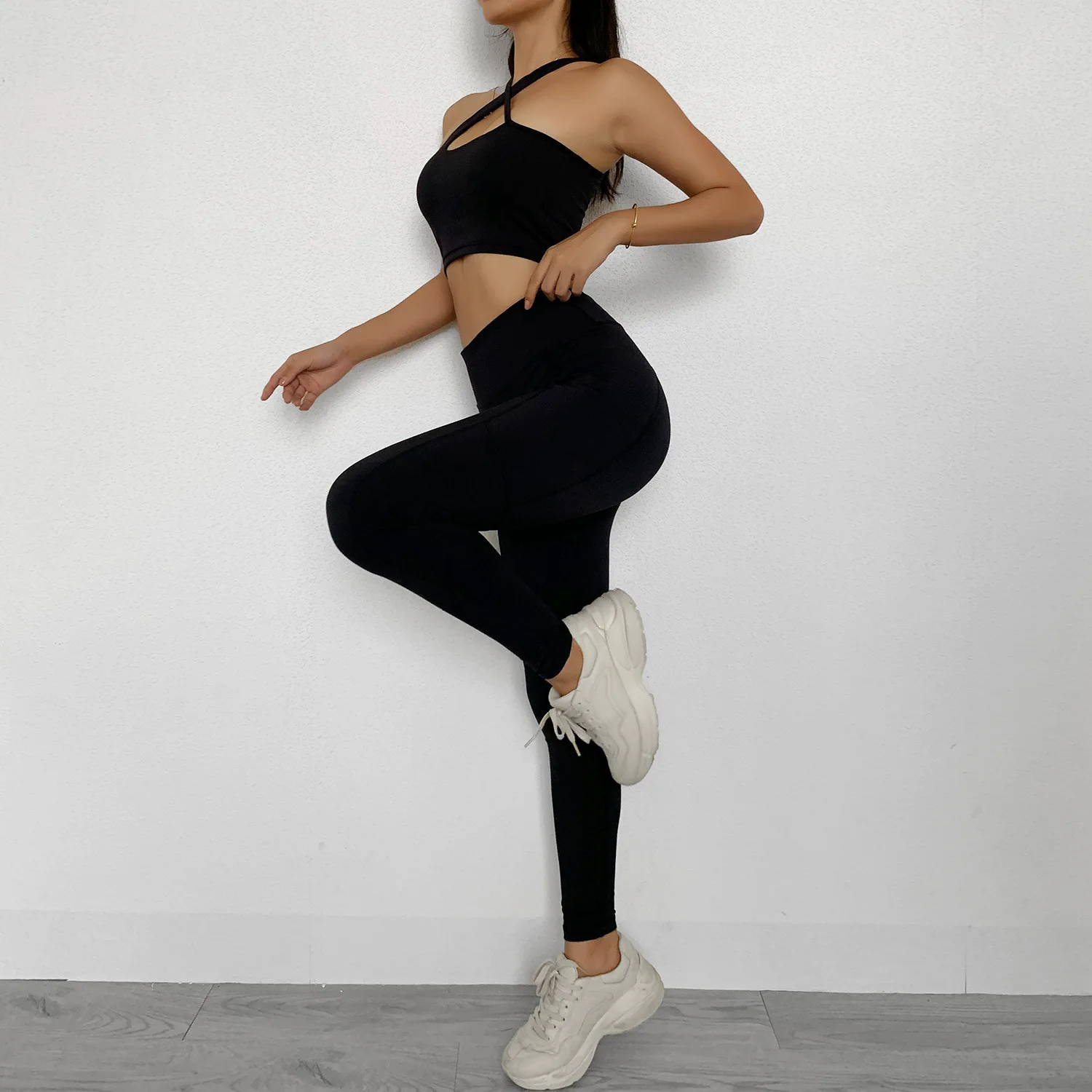 Бесшовный комплект из 2 предметов, костюм для йоги, косой бюстгальтер на плечах, топ, брюки, спортивный фитнес, ударопрочный, для бега, спортивная одежда, тренировочные костюмы