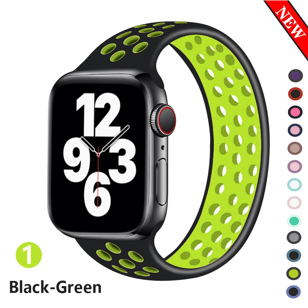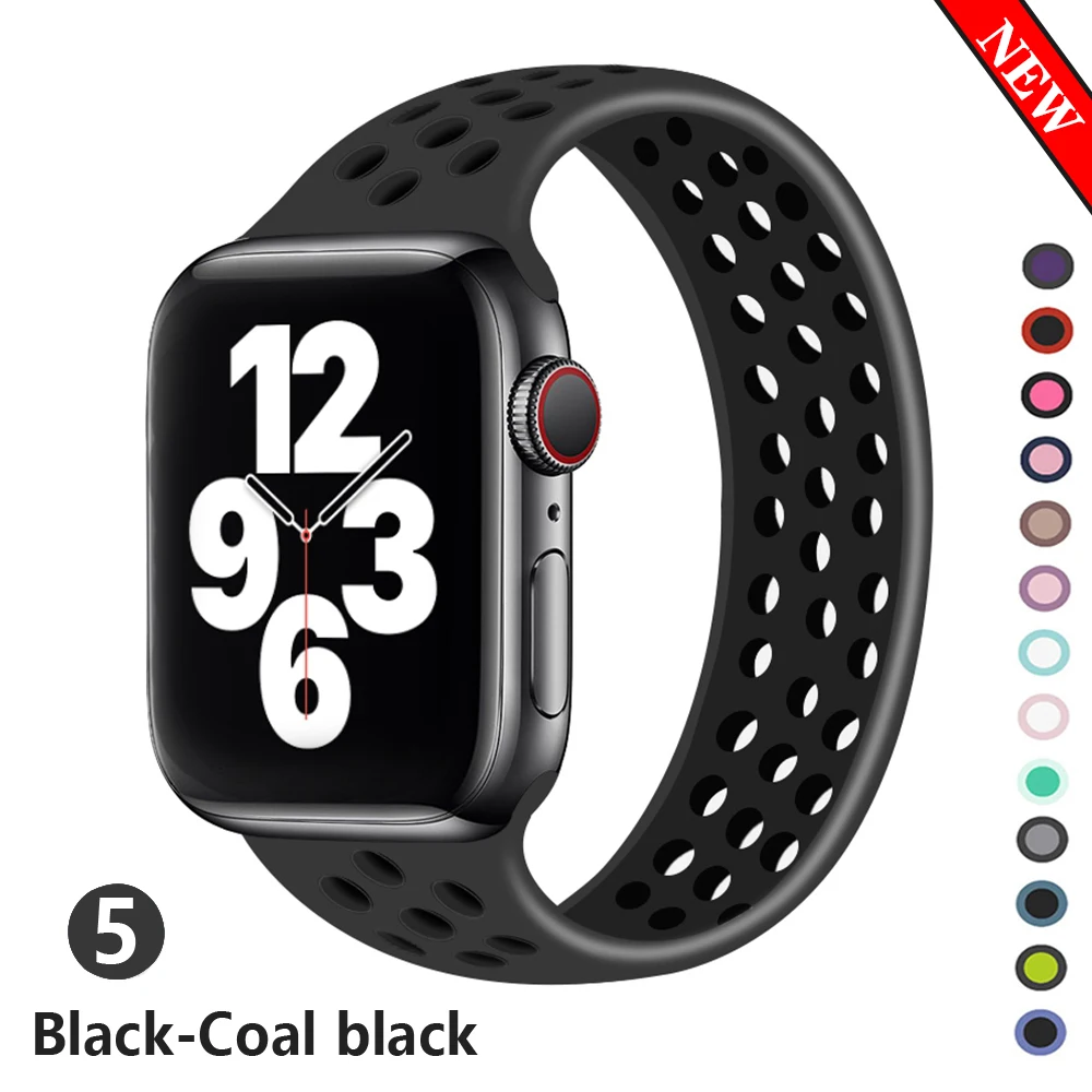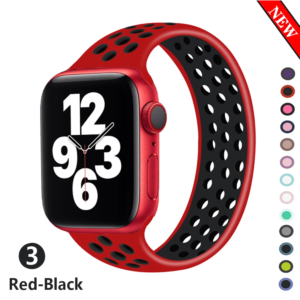 Силиконовый ремешок Solo Loop для Apple Watch, 44 мм, 40 мм, 38 мм, 42 мм, дышащий эластичный ремешок для iWatch 5/4/3/SE/6