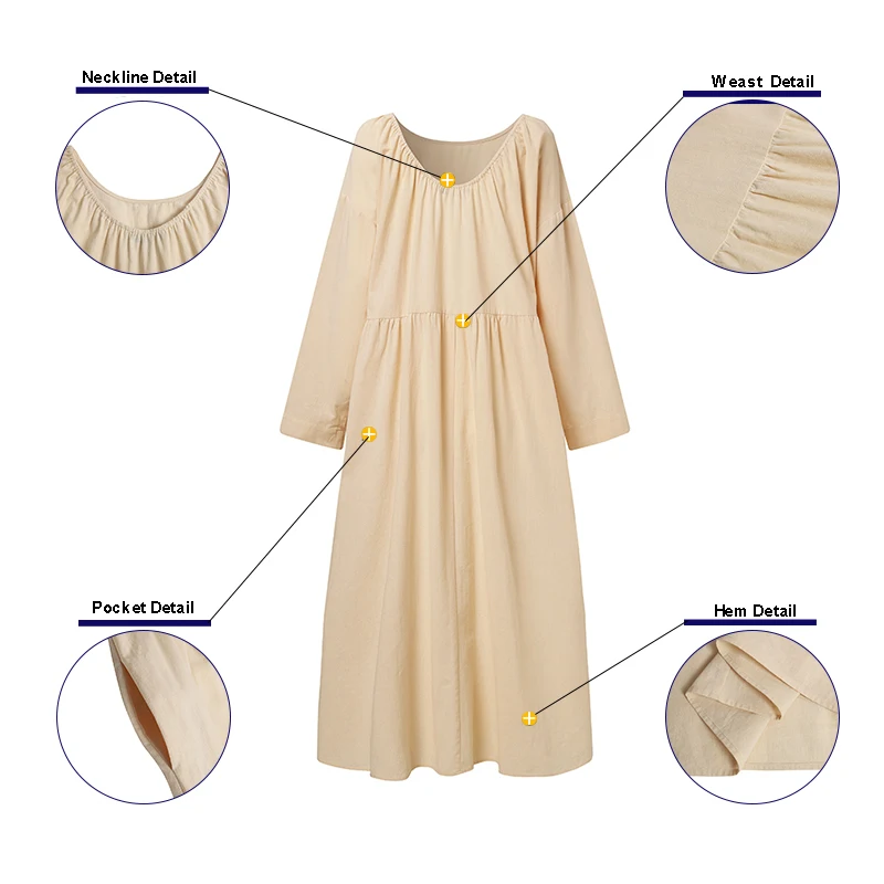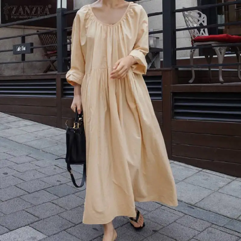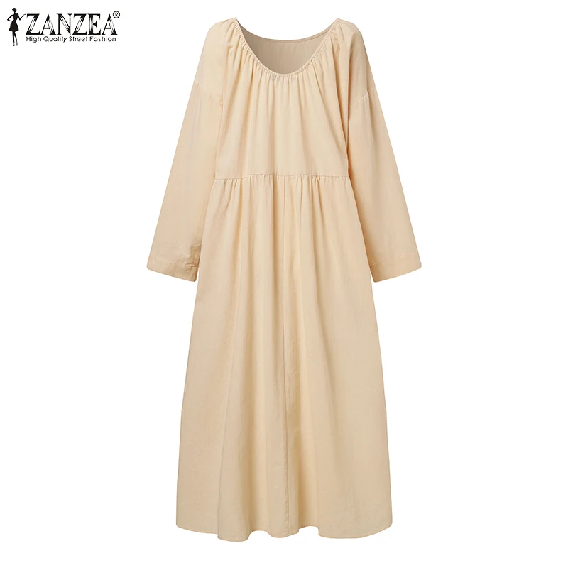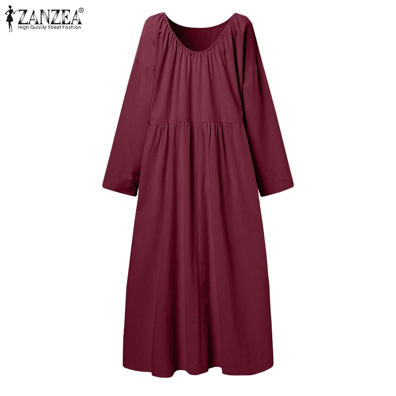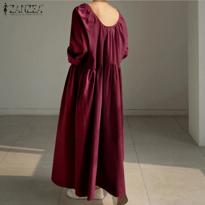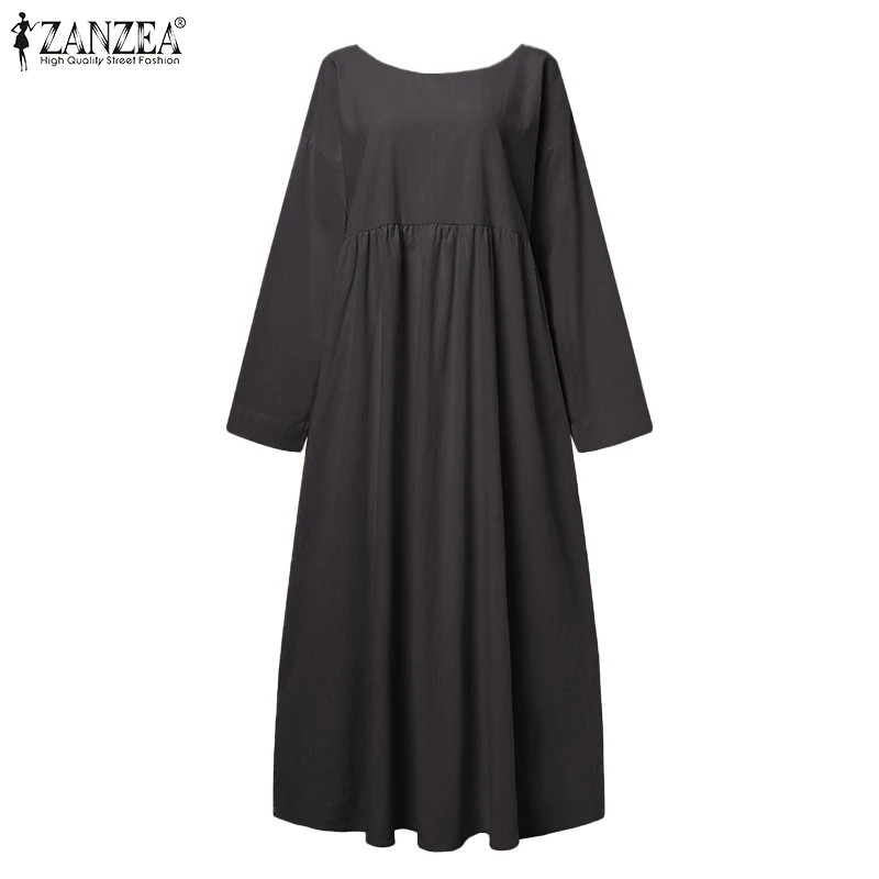 Платье ZANZEA женское с длинным рукавом, повседневное Длинное свободное однотонное с круглым вырезом и оборками, большие размеры 5XL, на осень