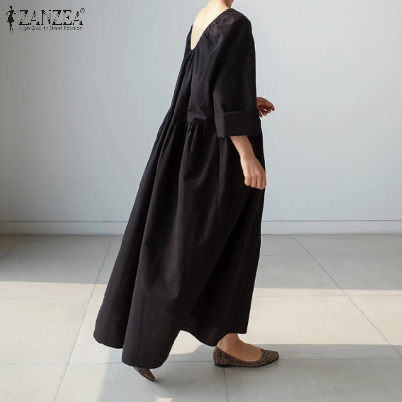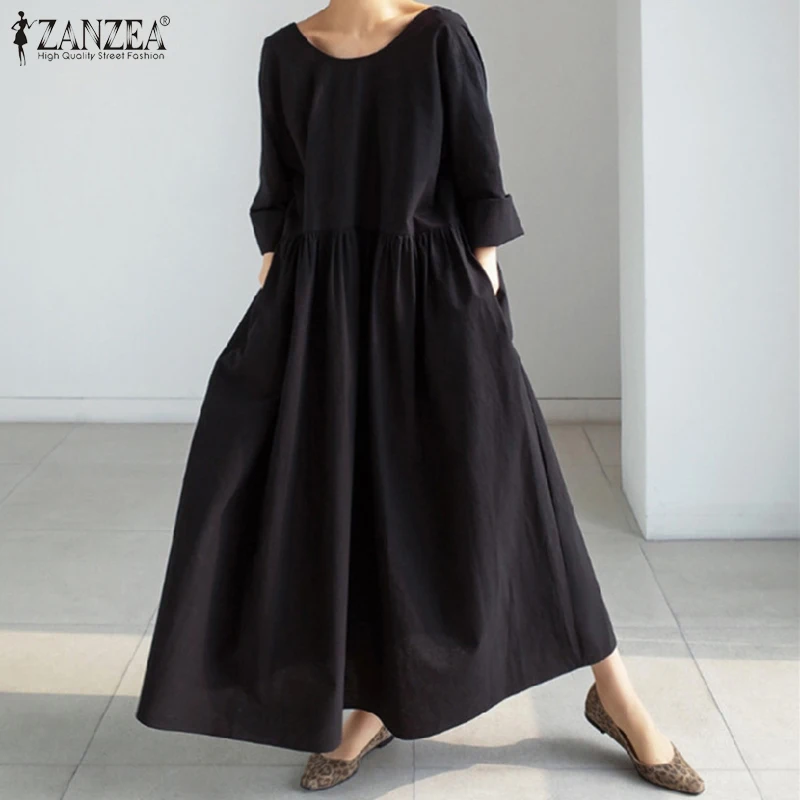 Длинные Макси платья для женщин 2022 женский ретро Vestidos ZANZEA ...