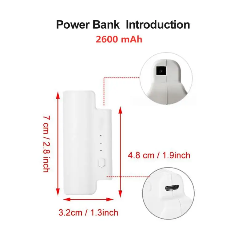 Внешний аккумуляторРазмер: диаметр около 2 см/0,79 дюйма; Высота около 7 см/2,8 дюйма
