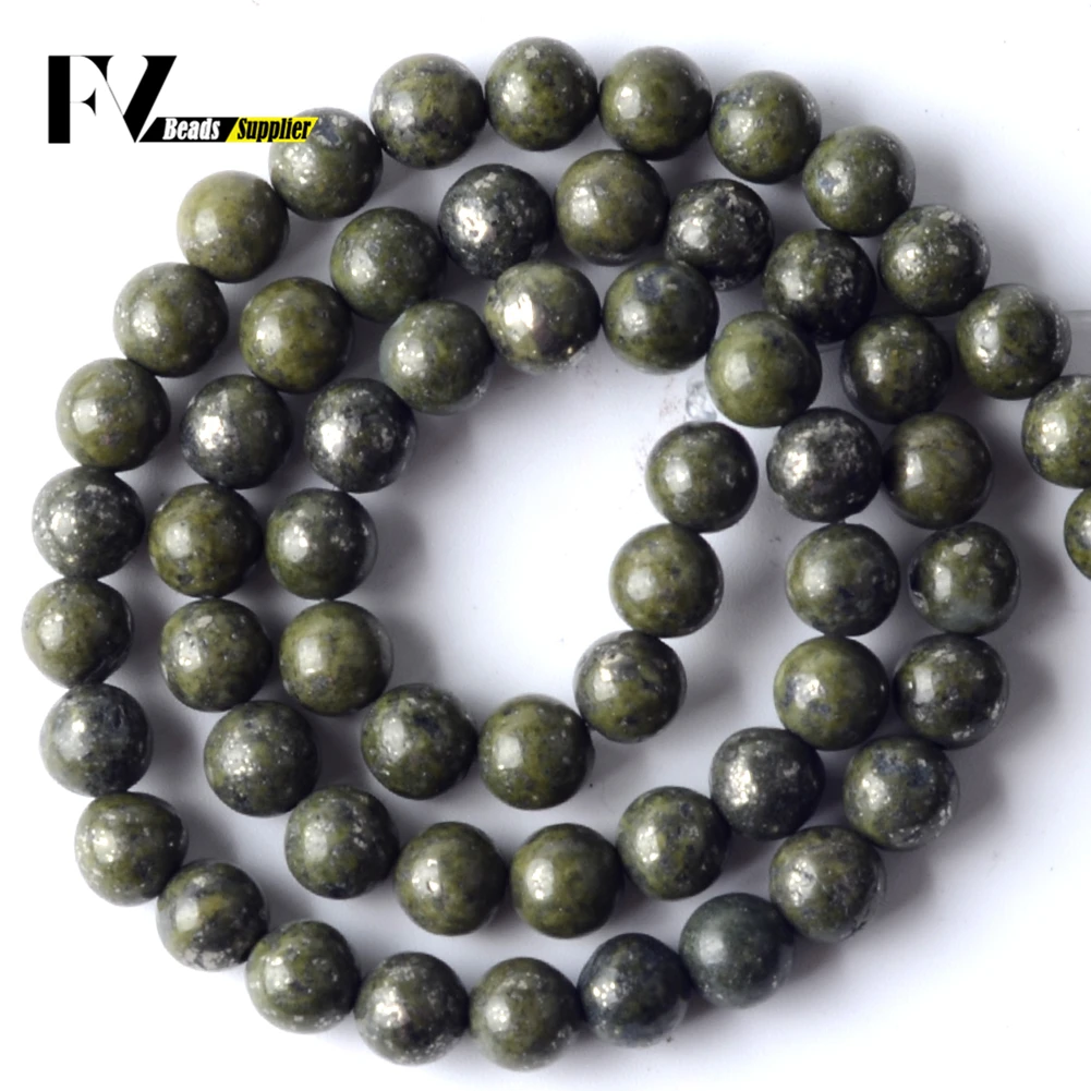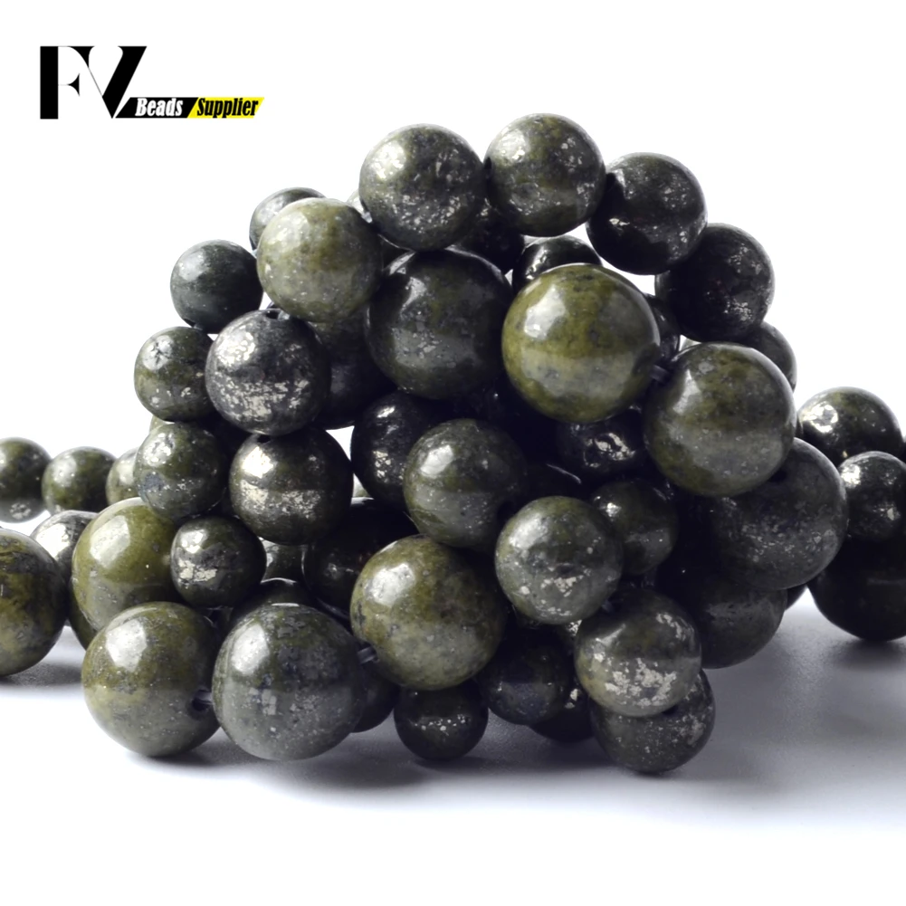 Натуральный зеленый железо Пирит камень кость круглые промежуточные бусины с большим отверстием минеральных бусин для изготовление, поиск ювелирных изделий Diy серьги браслет на возраст 6, 8, 10 мм