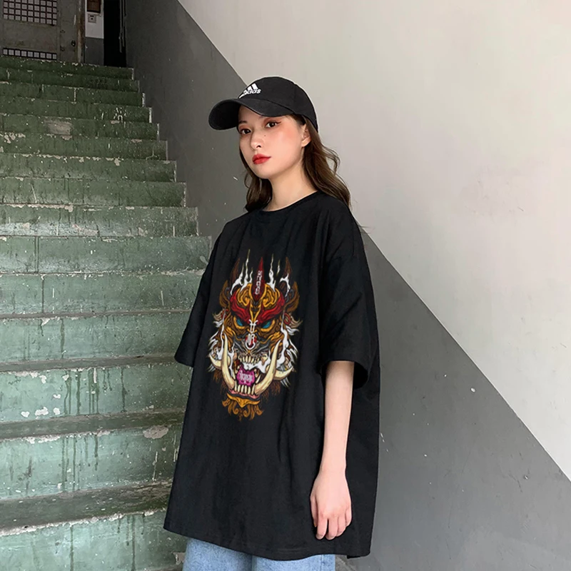 Женские хлопковые футболки в стиле Харадзюку, черные футболки большого размера в Корейском стиле, в стиле K-POP, винтажная повседневная одежда с принтом, Прямая поставка