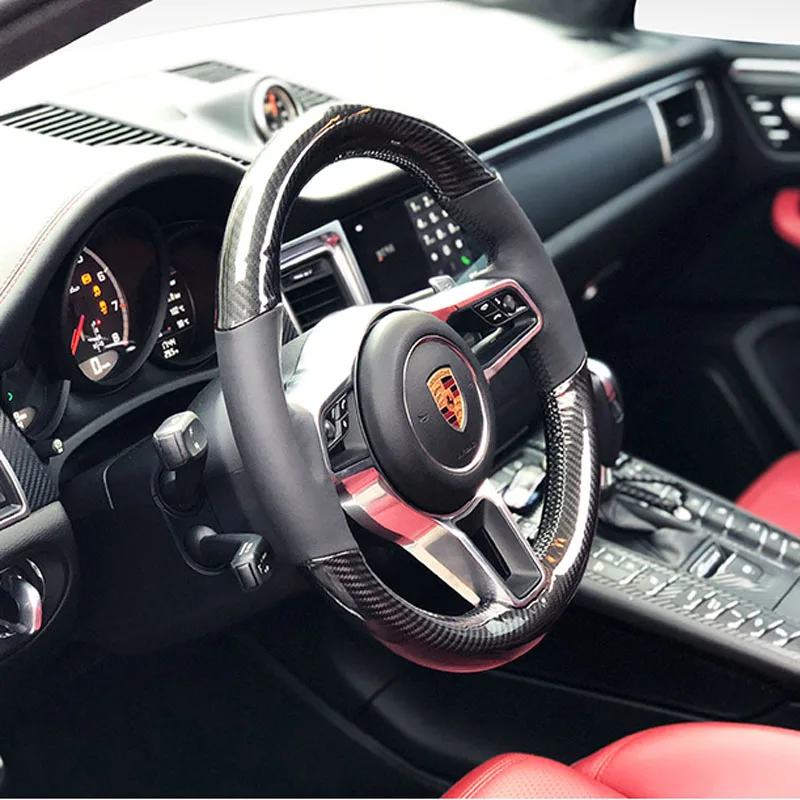5D углеродное волокно черный кожаный руль черный стежок на обертывание крышка подходит для Porsche Macan Cayenne 2015-2016Изолирует от перепадов температуры и придает спортивный вид. Высококачественная кожа обеспечивает привлекательный внешний вид, прочна и приятна на ощупь. Специально Протестировано, чтобы противостоять выцветанию и усадке, чтобы выглядеть хорошо из года в год. Подкрепления с отверстиями для шнуровки обеспечивают плотное прилегание от фабрики.