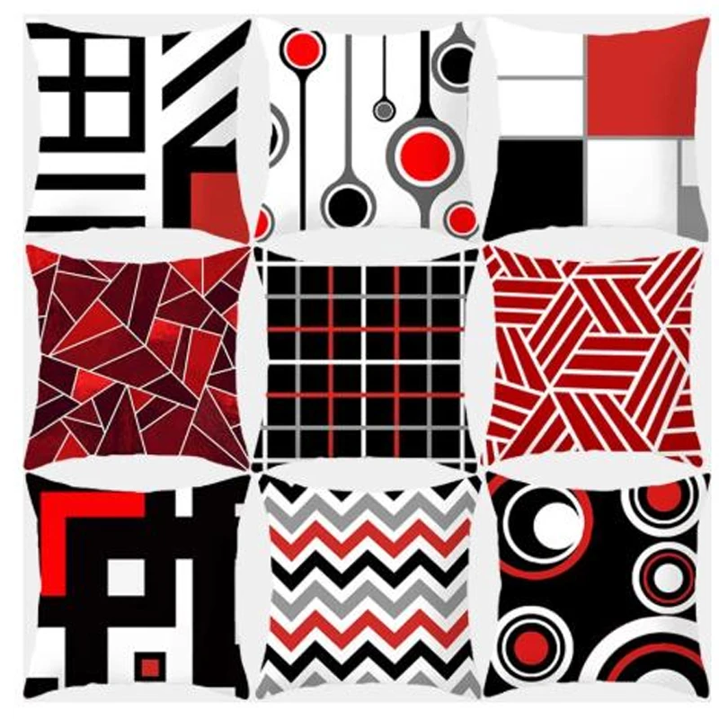 Подушка красная Геометрическая, декоративная подушка из полиэстера, модная клетчатая полосатая диванная подушка, домашний декор