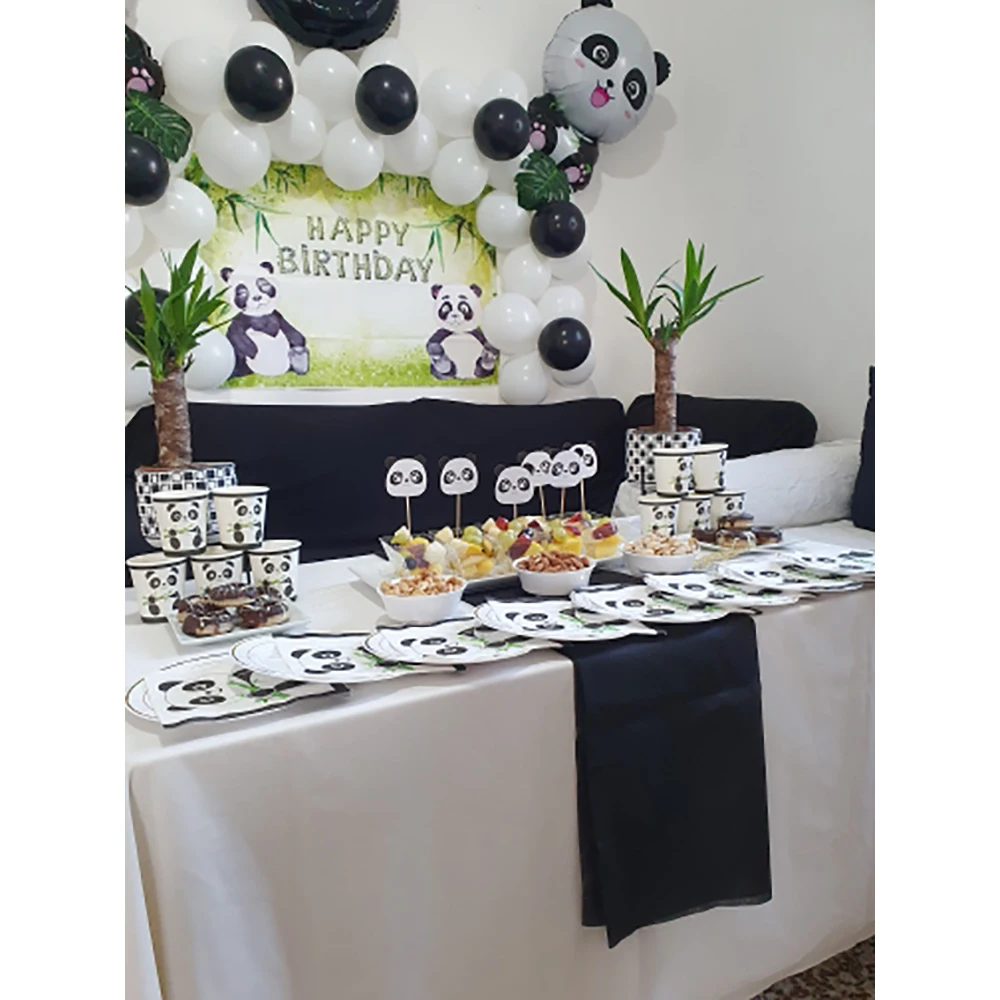 Фон для детских фотографий с изображением панды на день рождения, джунглей, декор для новорожденных, бамбуковые животные, баннер для фотостудии