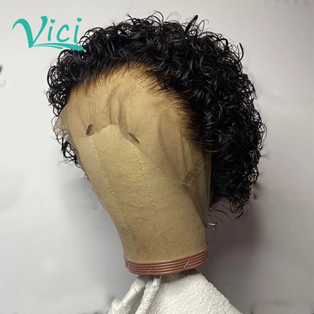 Парик из натуральных волос culry bob, с короткой стрижкой Пикси, парик для конского хвоста 13*4, на шнурках, с детскими волосами, без клея, отбеленные узелки для чернокожих женщин