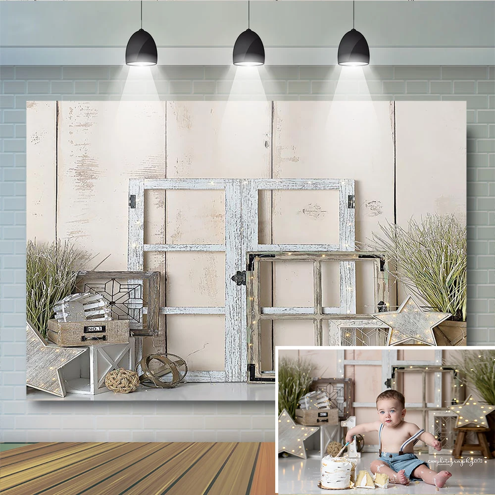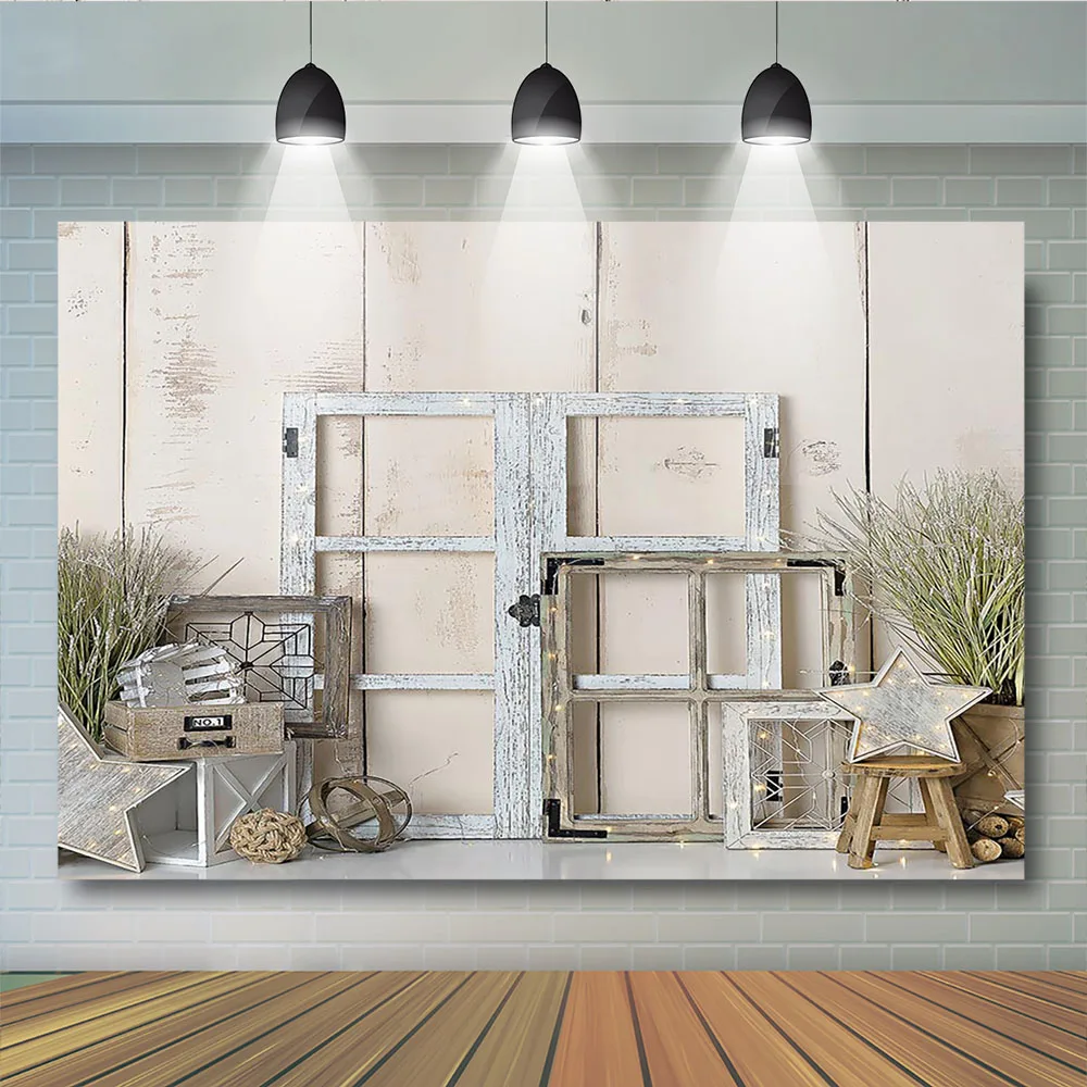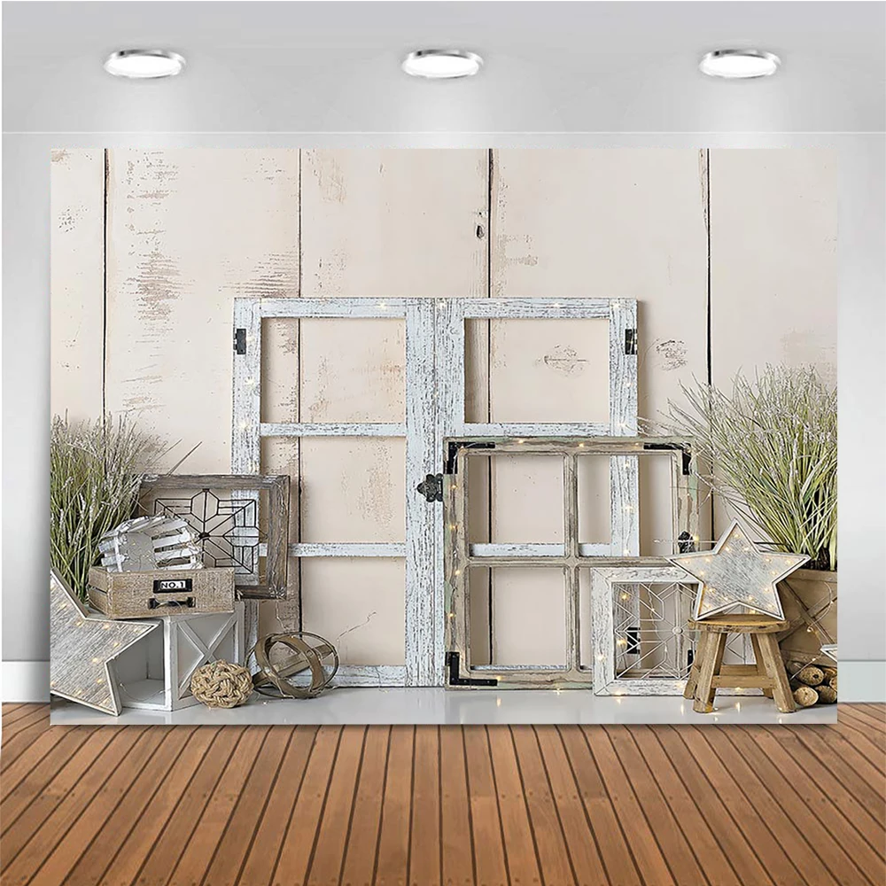 Фон для фотосъемки на день рождения с изображением деревянного окна Детский праздник художественный фон для фотосъемки новорожденных баннер для фотостудии