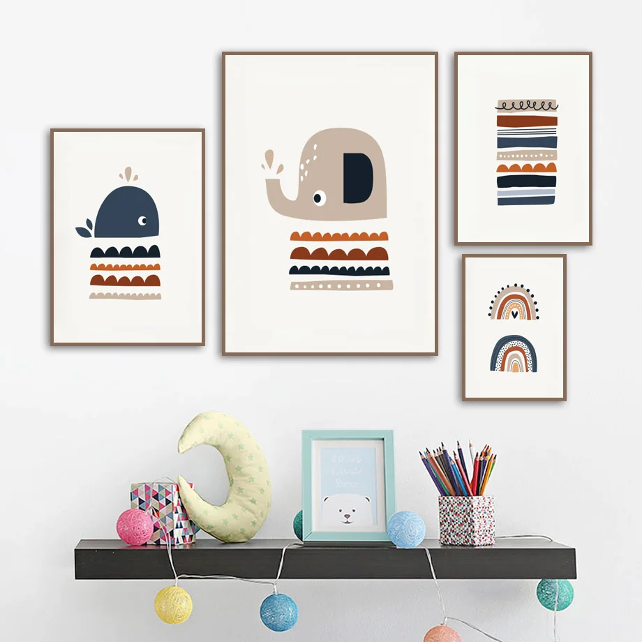 Слон свинка лиса Медведь Олень Тигр Бегемот скандинавские плакаты и...