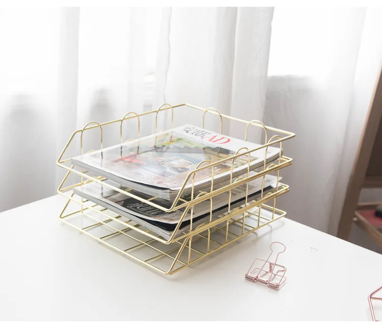 Золотой металлический поднос для файлов, настольный аксессуар, подс...