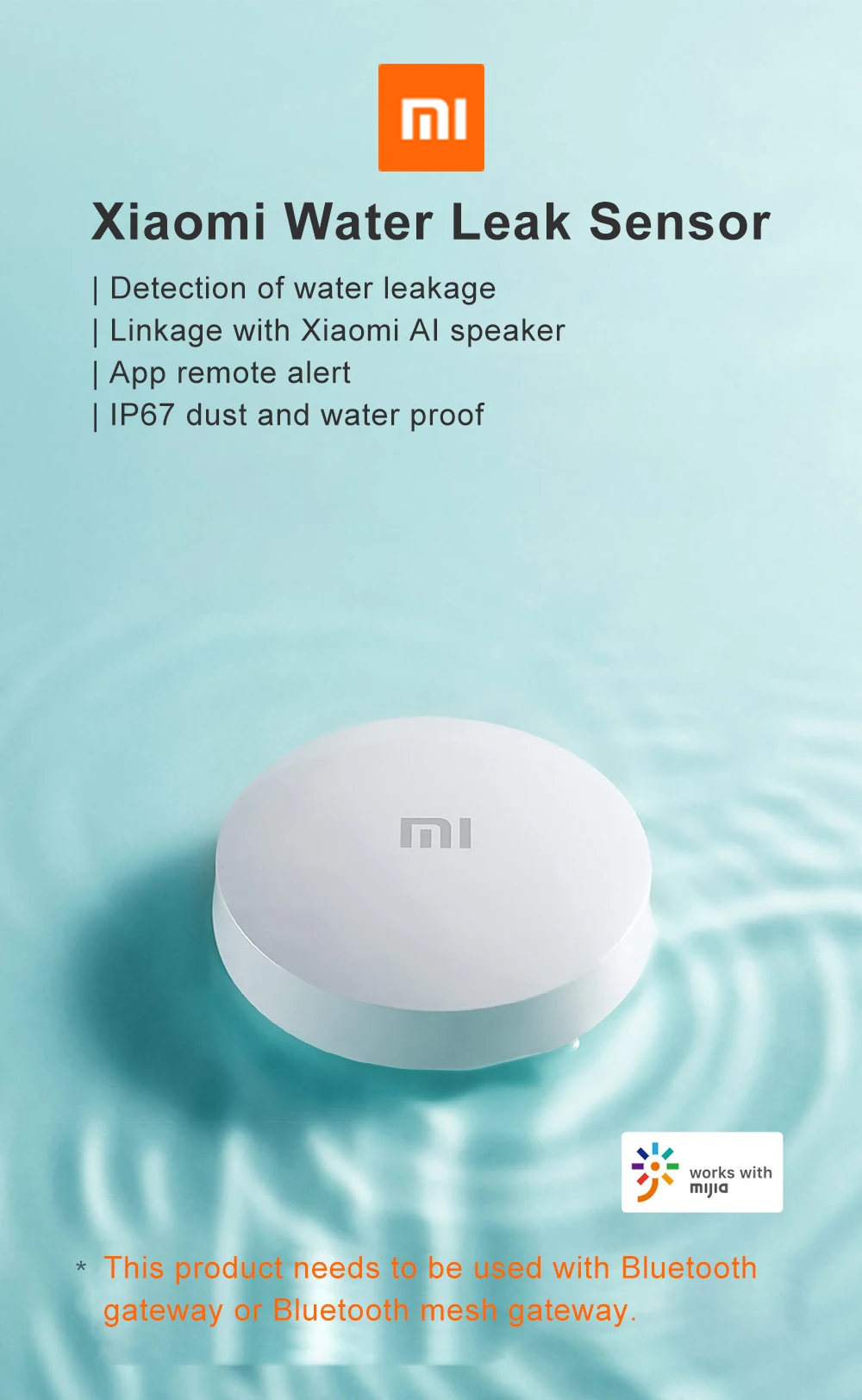 Датчик утечки воды Xiaomi использует проводимость воды. Когда высота погружения воды достигает 1 мм, два металлических зонда образуют дорожку, которые могут быть соединены с другими интеллектуальными продуктами для отправки напоминаний (функция должна использоваться с шлюзом Bluetooth или сетчатым шлюзом Bluetooth), и своевременные меры реагирования, чтобы избежать больших потерь.