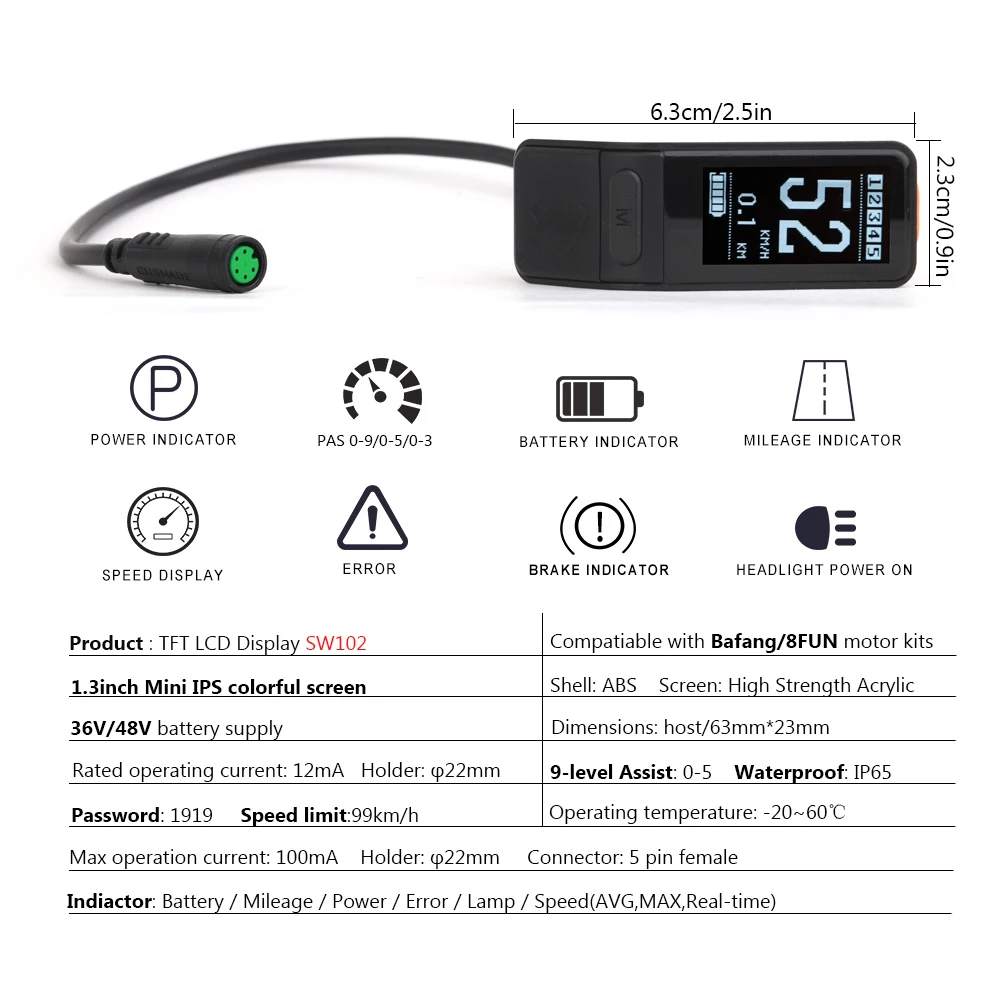 Мини-индикатор заряда аккумулятора SW102 с ЖК-дисплеем для электровелосипеда Bafang 8FUN 36 в 48 в 52 в 60 в 750 Вт