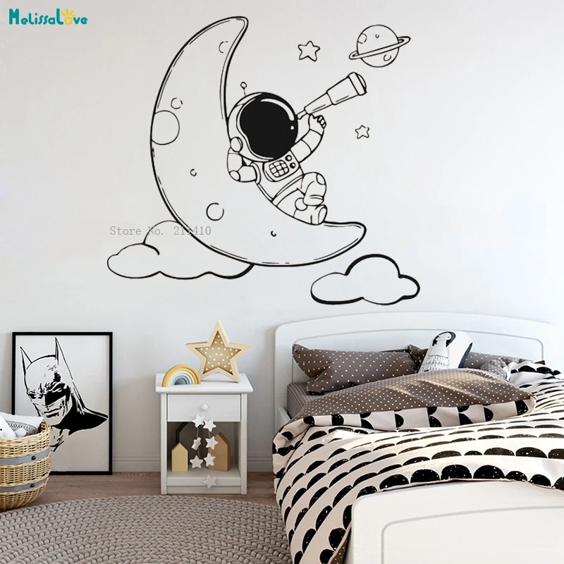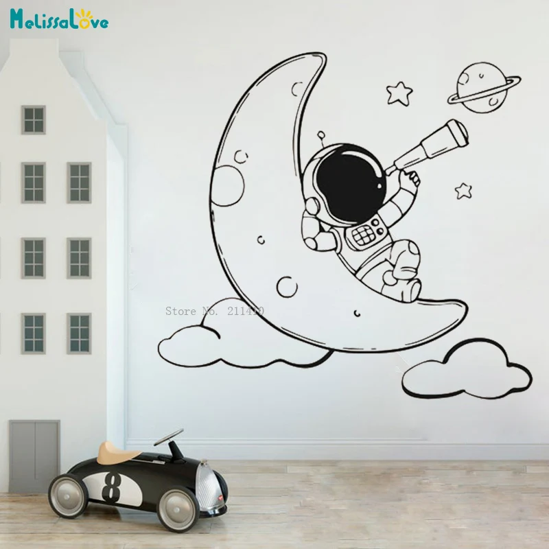 Детская виниловая наклейка на стену в виде астронавта, космоса, Луны, космонавта, детской комнаты, художественная роспись, художественный Декор YT5510