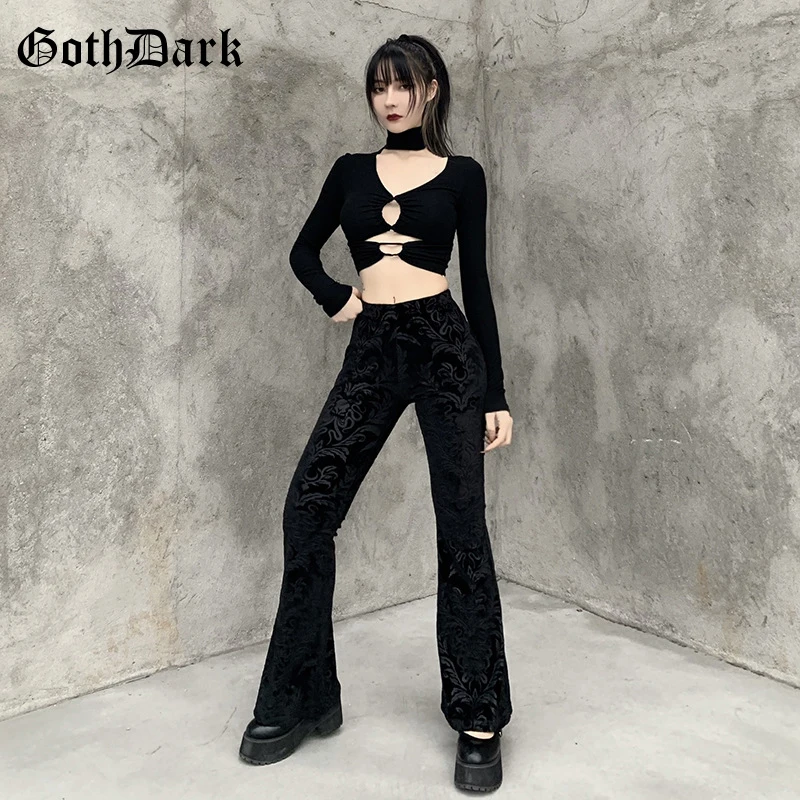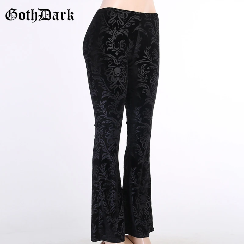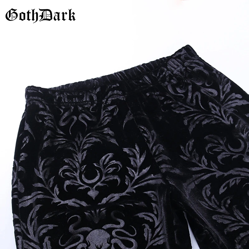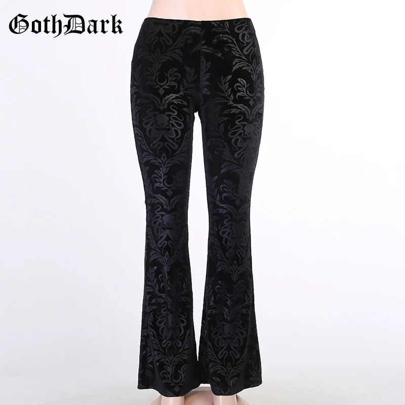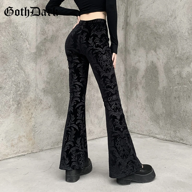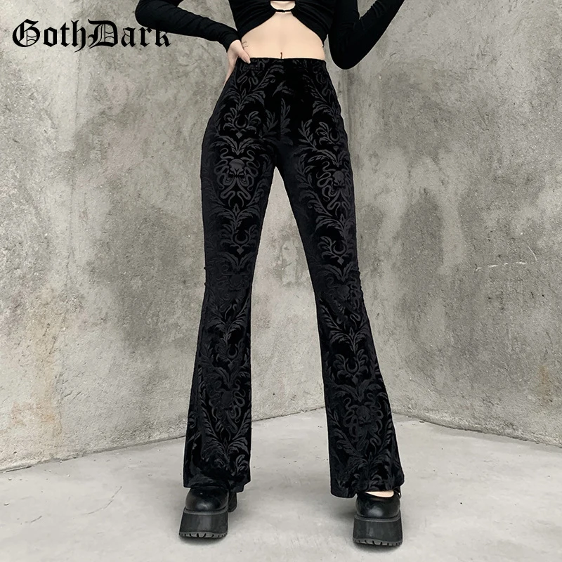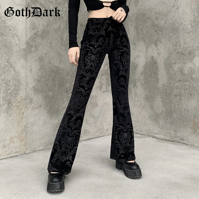 Женские вельветовые брюки Goth Dark, винтажные Брюки-клеш с цветочным принтом, с высокой талией, Осень-зима, 2021