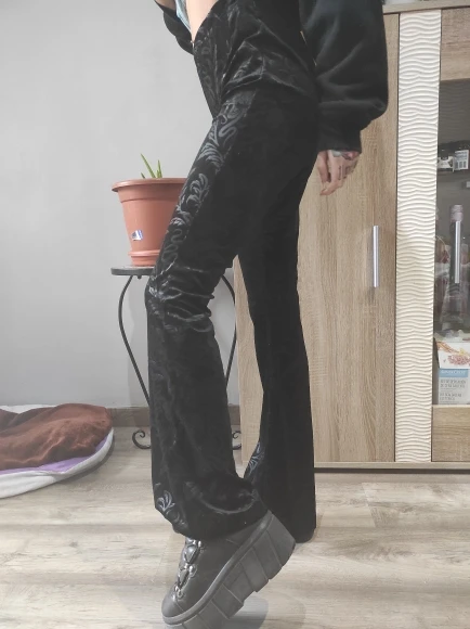 Очень красивая ткань; Приятная, мягкая и Вельветовая; Нравится. Вы не можете видеть его так четко, как на картинке, но он очень красиво расклешен, не слишком много, но и не слишком мал. :) Идеальный размер! Я купил xs для справки, я 5'2 и 45 кг, не слишком туго, но и не слишком свободно. У него также есть эти очень красивые цветы, но они заметны только при хорошей молнии или если вы прибудете достаточно близко, чтобы посмотреть на них. Мне очень нравится дополнительная информация <3, поэтому я доволен этим продавцом, и доставка была очень быстрой. Я заказал у них 3 вещи, и все они были в хорошем состоянии. Я рекомендую этот магазин!: 3.