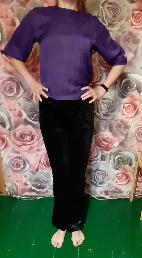Как описано, потрясающие штаны. Они мягкие и эластичные. Размер L очень удобный. Моя Талия 80 см, а бедра 100 см.