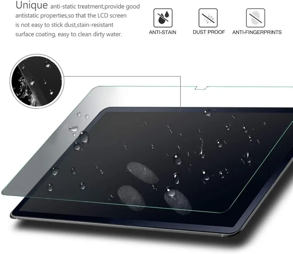 Изделие выполнено для защиты ЖК-дисплея от повреждений и царапин с помощью специально обработанного стекла, которое было усилено для увеличения амортизирующей способности. Вся поверхность протектора прозрачная, а задняя сторона покрыта прочным силиконовым клеем для легкой установки. При установке нет зазоров между ЖК-дисплеем и защитным чехлом, что означает, что чувствительность сенсорного экрана не влияет.