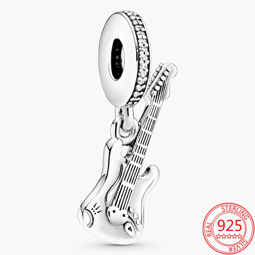 Аутентичные 925 стерлингового серебра бисером Рок электрогитары с позолоченным кольцом подходит бренд браслет кулон Рождественский подарок