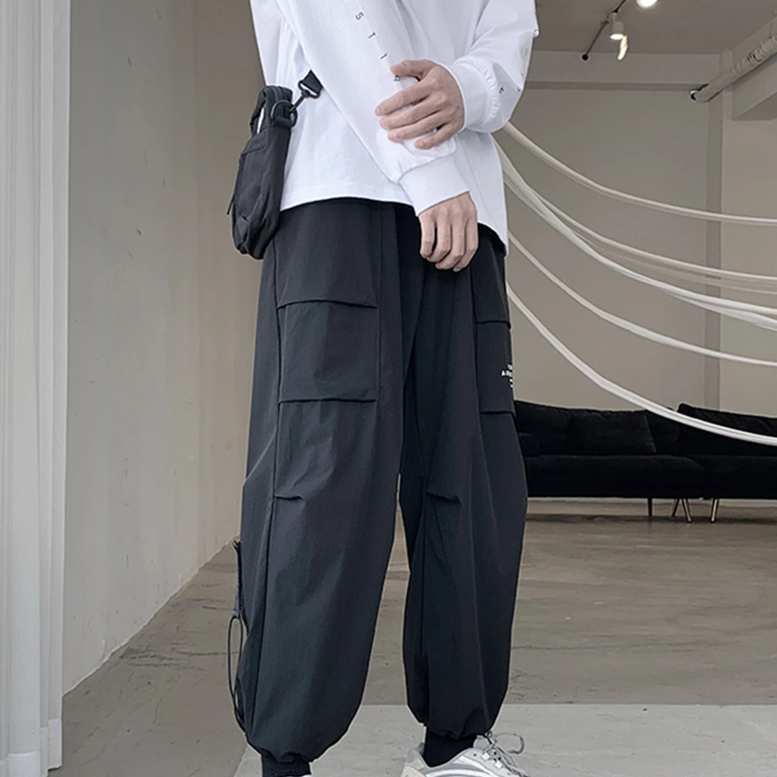 Брюки-карго мужские спортивные тонкие, повседневные однотонные штаны с множеством карманов, Завязывающиеся на щиколотке, свободные штаны, уличная одежда