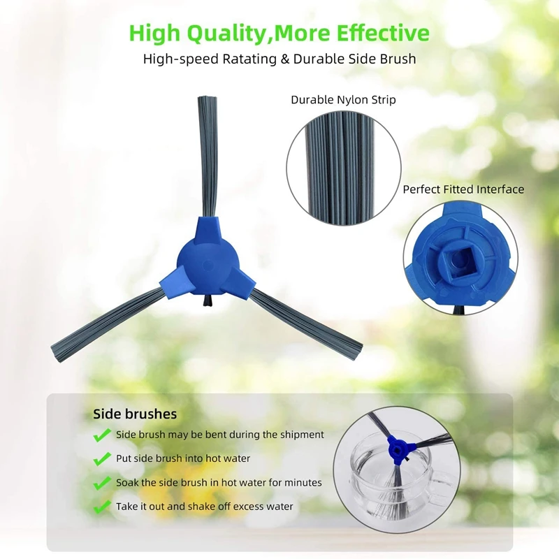 1. В HEPA-фильтре используются материалы HEPA и улавливается до 99.5% пыли, аллергенов и частиц.2. Основная щетка хорошо улавливает шерсть домашних животных, пыль, пыль и мусор и может использоваться на твердой древесине, ковре и плиточном полу.3. Боковая щетка предоставляет дополнительную гарантию, гарантируя, что вы можете добраться до стены и проникнуть глубоко в угол, чтобы получить отличный эффект очистки.4. Для поддержания наилучшей производительности робота рекомендуется заменять детали каждые 2-3 месяца.5. Детали и аксессуары изготовлены из экологически чистых материалов, практически не требующих технического обслуживания. Легко заменить и установить на робот-пылесос.Материал: пластикЦвет: синий + белыйПосылка2 х основная щетка6 боковых щеток6 x Фильтр
