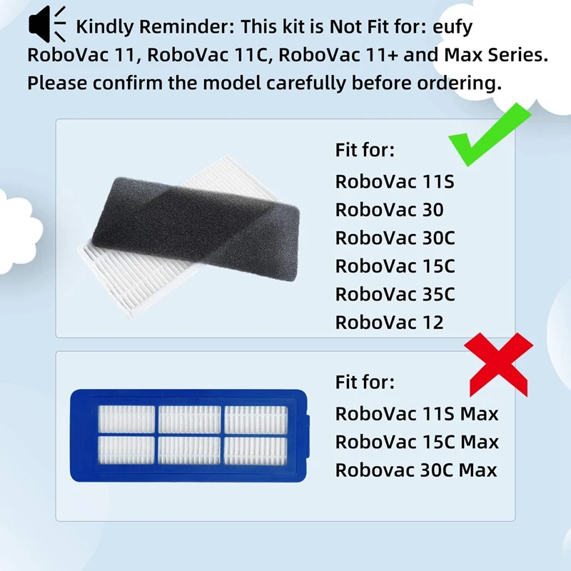 Набор запасных частей для фильтра Eufy RoboVac 11S 30 30C 15C 12 35C, 6 фильтров, 5 боковых щеток, 1 роликовая щетка