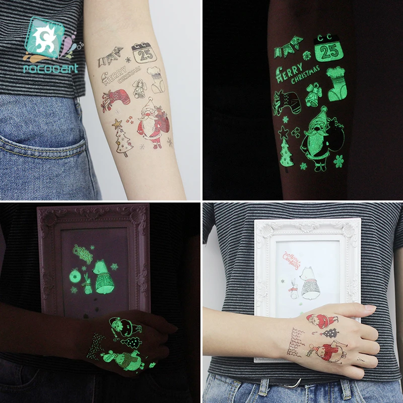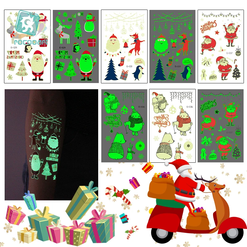 Рождественская светящаяся Временная тату-наклейка Санта-Клаус Снеговик мяч Рождественская елка дети поддельная вспышка Водонепроницаемая боди-арт тату