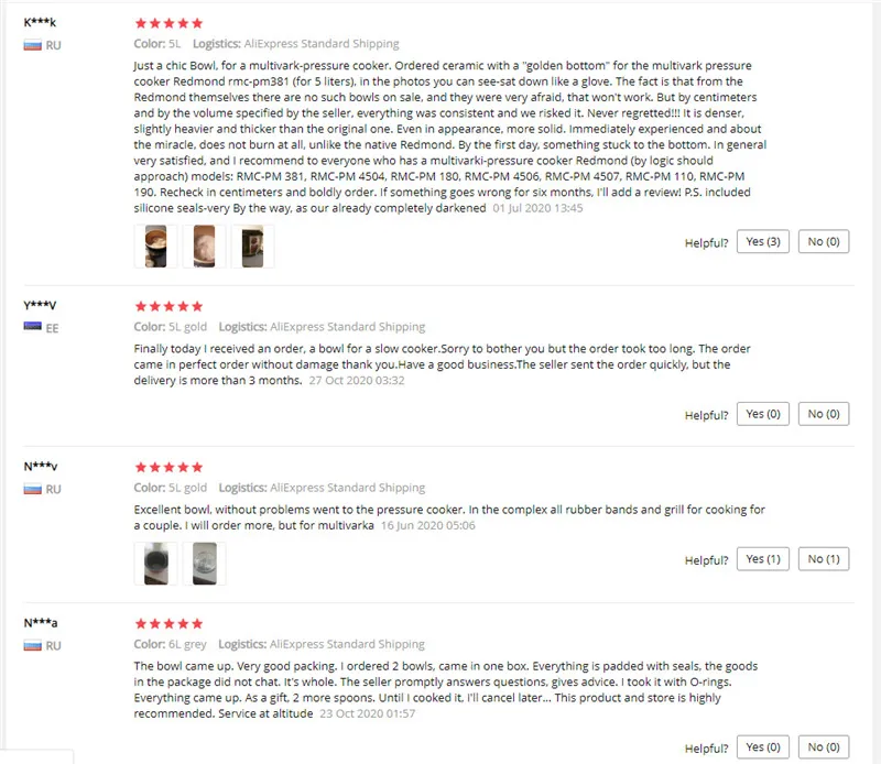 На вид чаша хорошая, но к мультиварке Redmond M20 не подошла (большая). Дали 5 дней для бесплатной отправки товара. Пока нашел фирму, минус два дня выходных, да еще и время работы до 16-00. Вообщем не успел, теперь чашу продаю сам.
