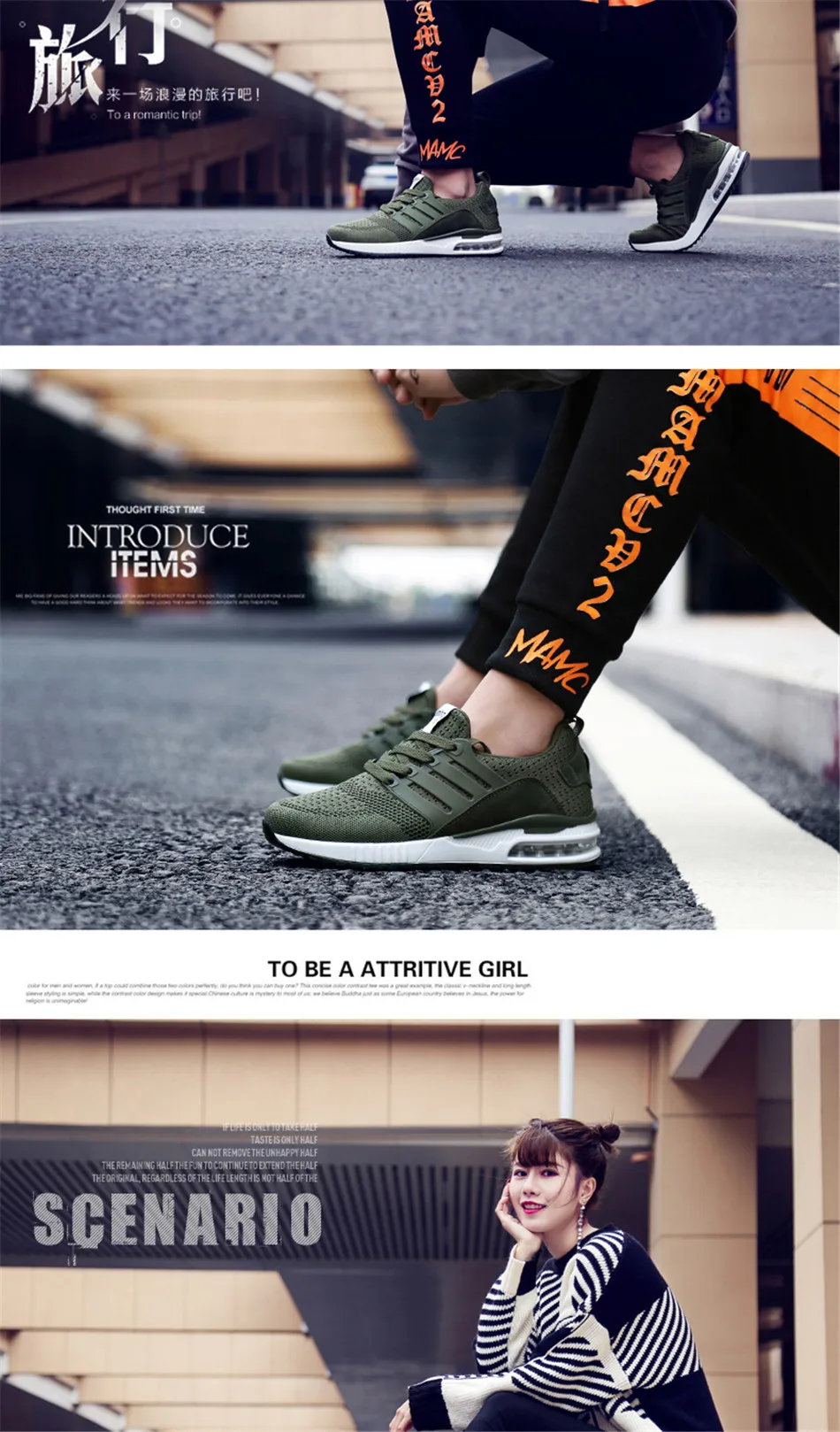 Модные мужские кроссовки с воздушной подушкой Черный Обувь с дышащей сеткой; Спортивная обувь на шнуровке; Женские уличные беговые теннисные туфли на нескользящей подошве кроссовки