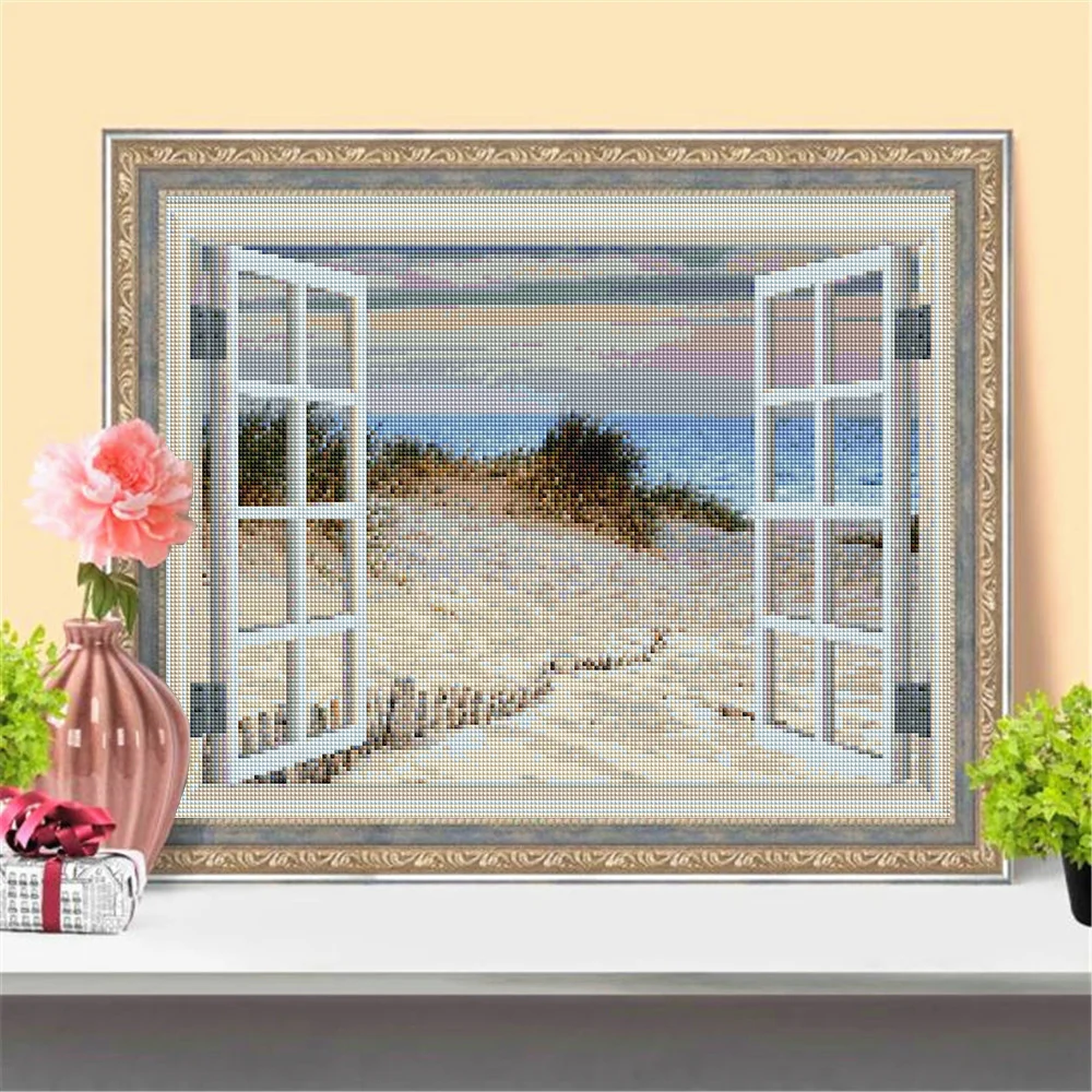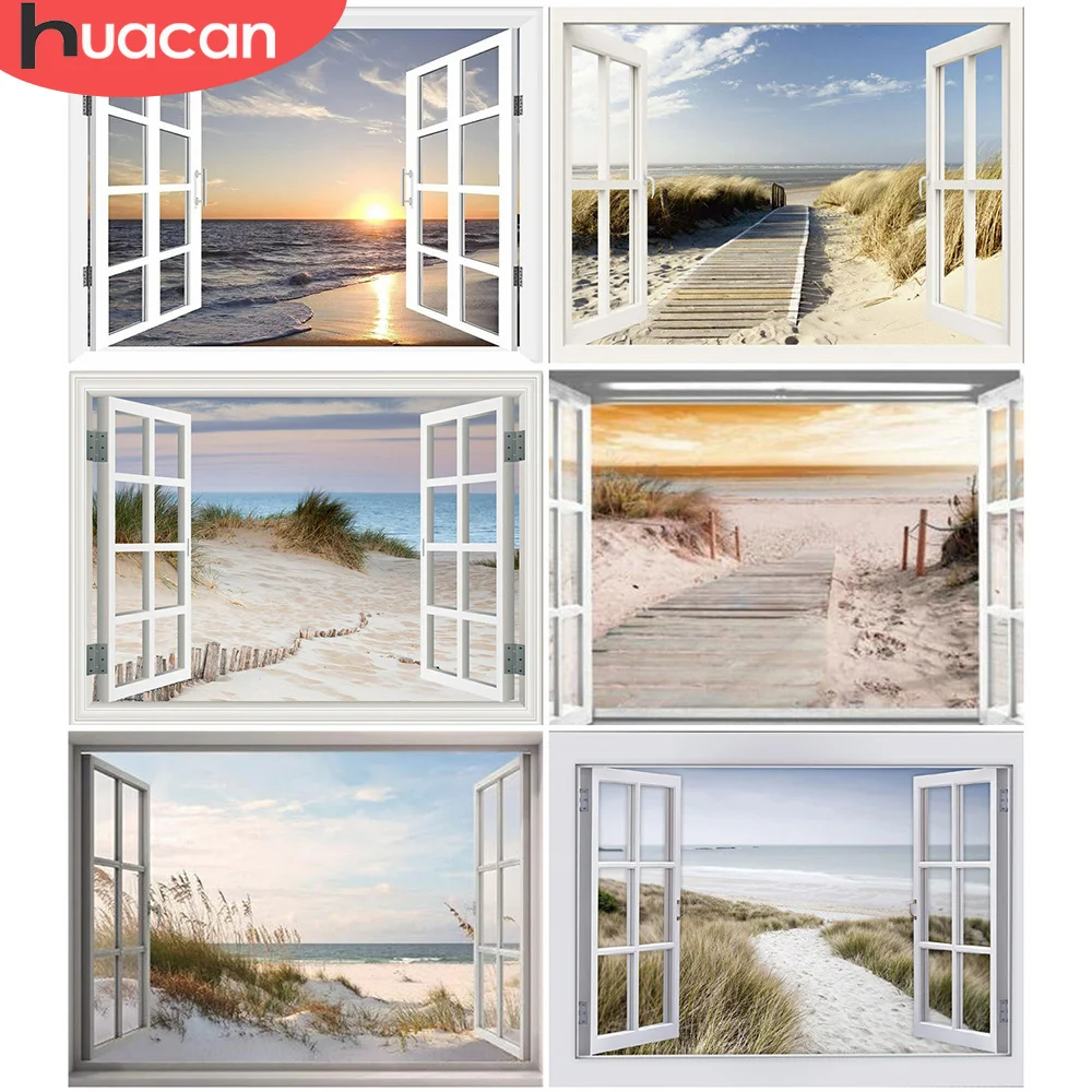 HUACAN DIY Полная квадратная Алмазная Картина пейзаж Пляж Алмазная вышивка побережье Стразы панорамным окном домашний декор