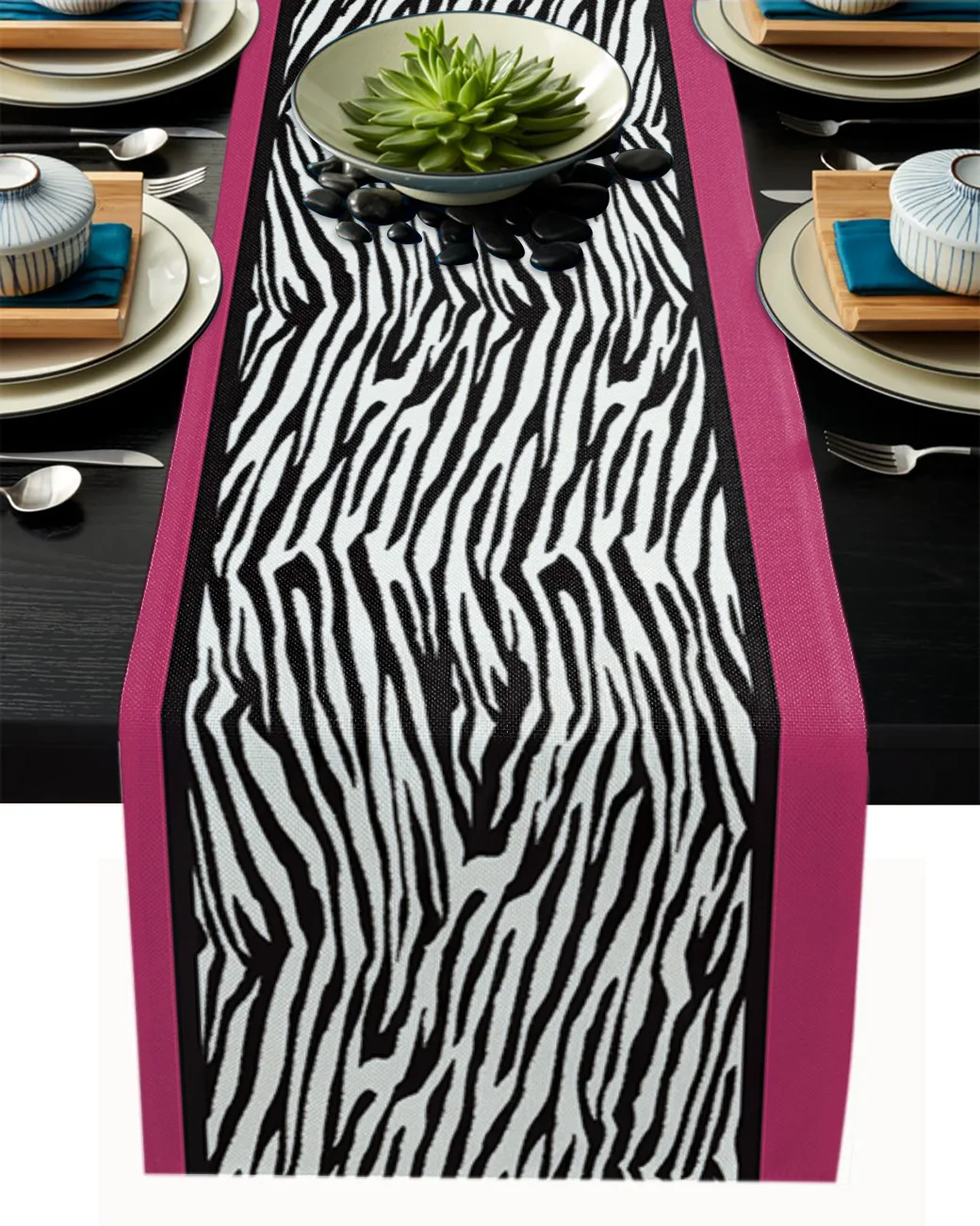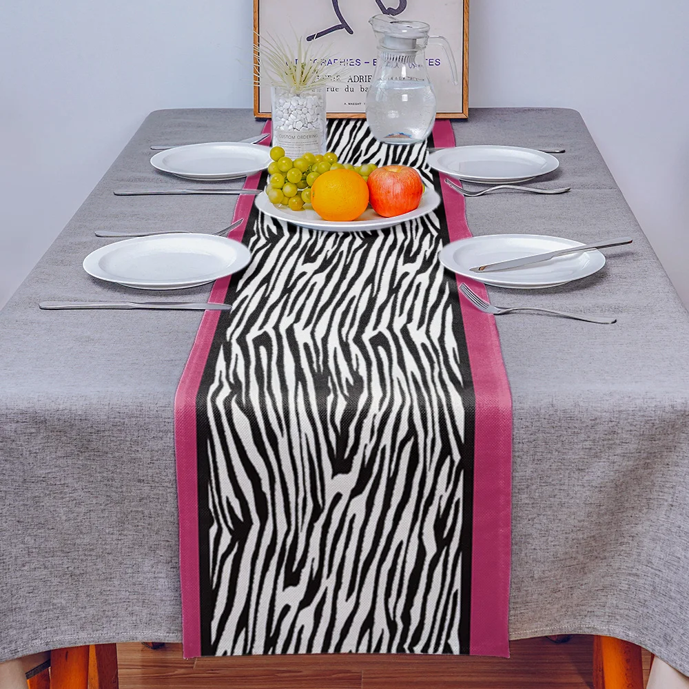 Розово-красный, черный, с узором зебры, настольная дорожка, современные свадебные украшения, столовая скатерть, коврик, рождественские украшения