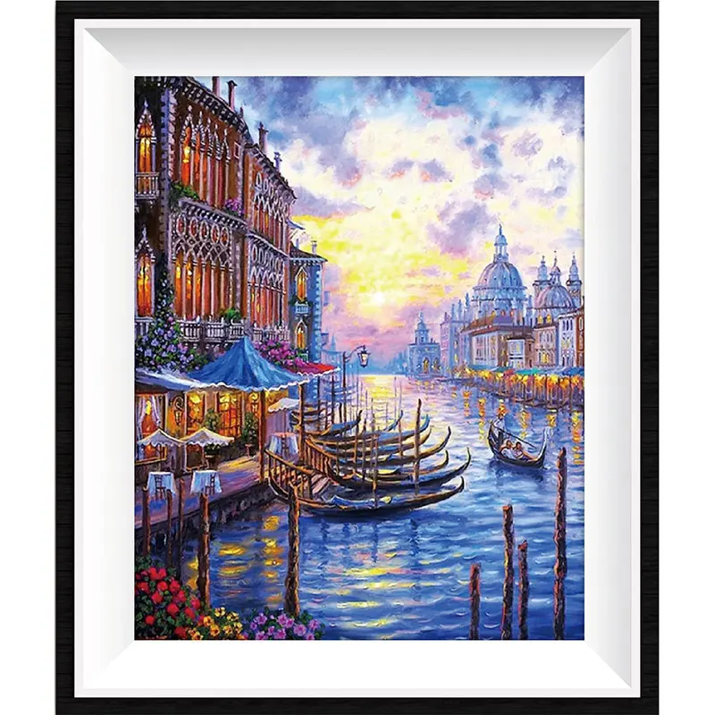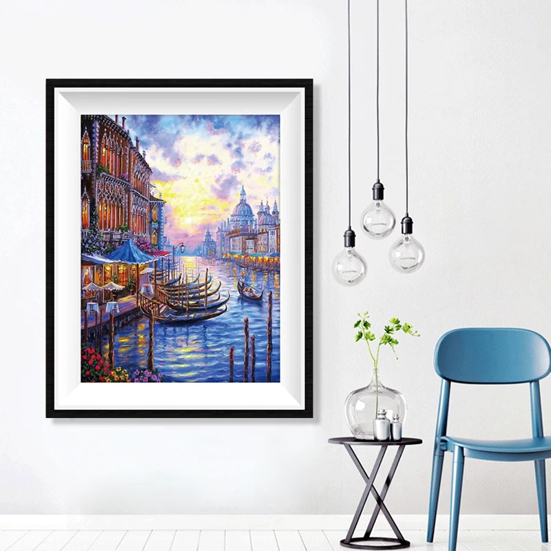 Алмазная 5D Вышивка сделай сам, картина Водный город, вышивка крестиком, Круглая Мозаика стразы, украшение для дома