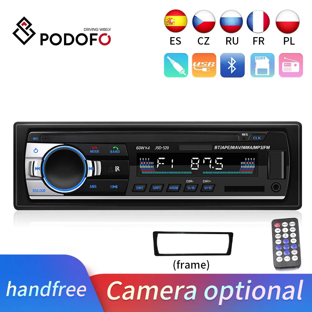 Podofo Bluetooth Авторадио Стерео Радио 1 Din FM Aux вход приемник SD USB JSD-520 12V In-dash автомобильный MP3 мультимедийный плеер