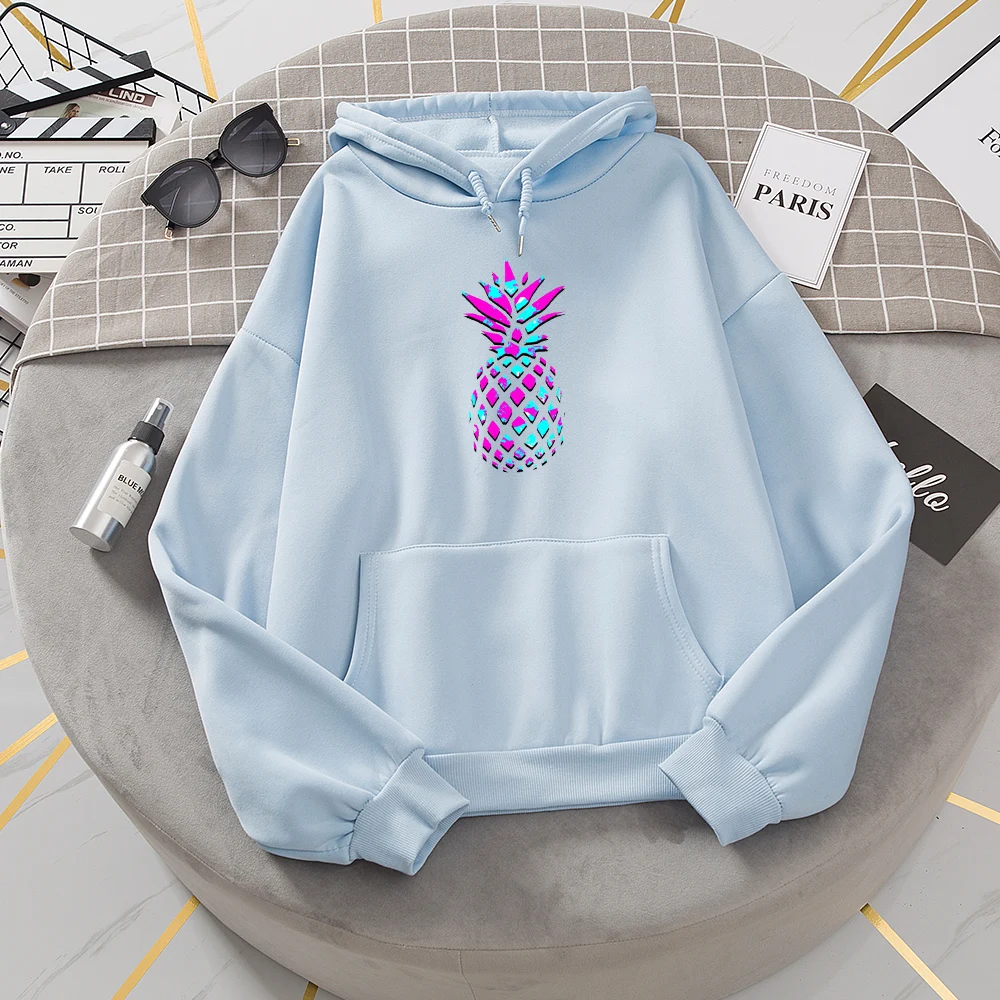 Повседневная Толстовка с принтом ананаса в стиле Харадзюку, Модный пуловер в стиле хип-хоп, уличный джемпер, Осенние теплые свободные толстовки с длинными рукавами для девочек Стиль: Повседневный,Вес: 450 г