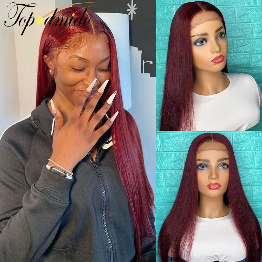 Парик Topodmido 99j, прямые волосы Remy, на сетке, передние парики, предварительно выщипанные, 13x4, парик из человеческих волос 4x4, бразильские волосы, парики без клея