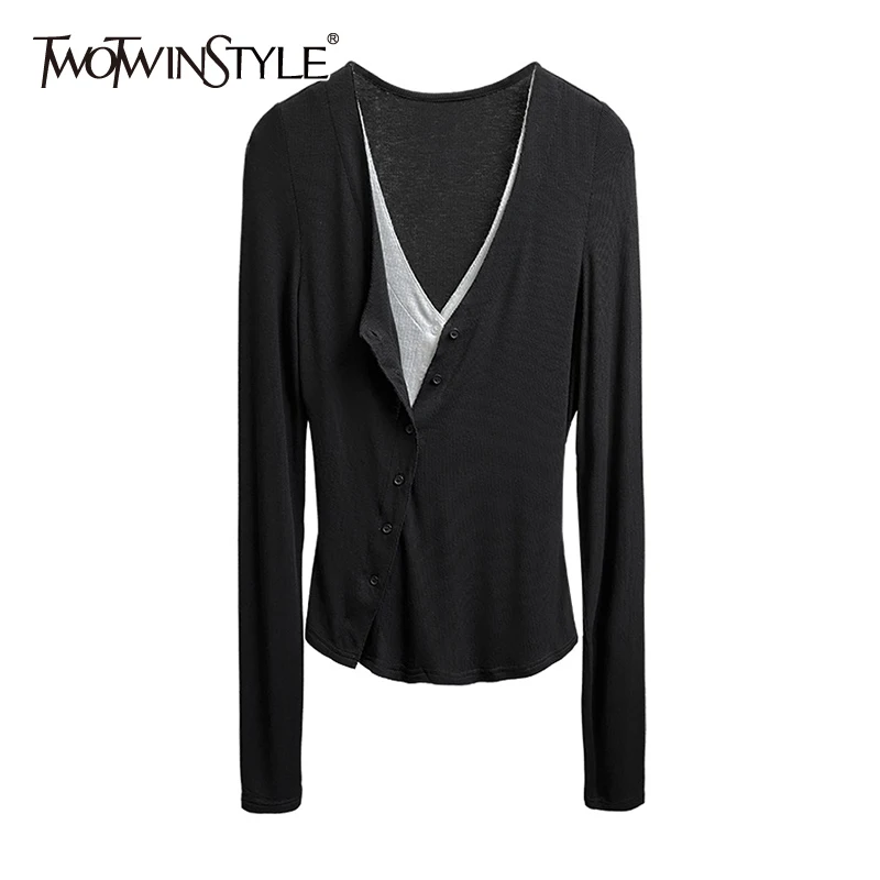 Женский вязаный кардиган TWOTWINSTYLE, вязаный кардиган с v-образным вырезом и длинным рукавом, осень 2020