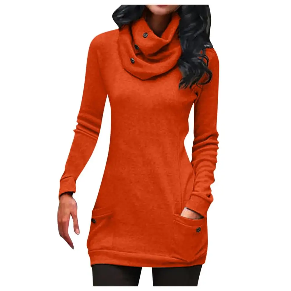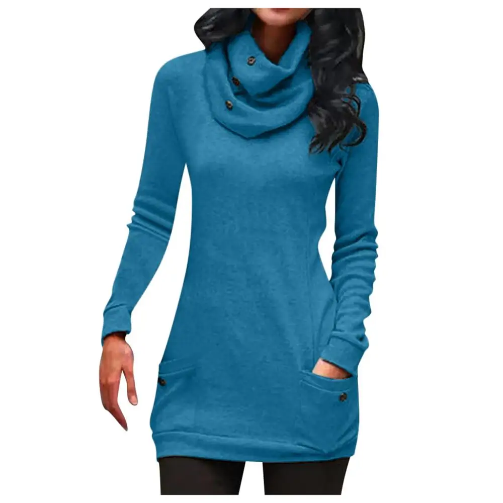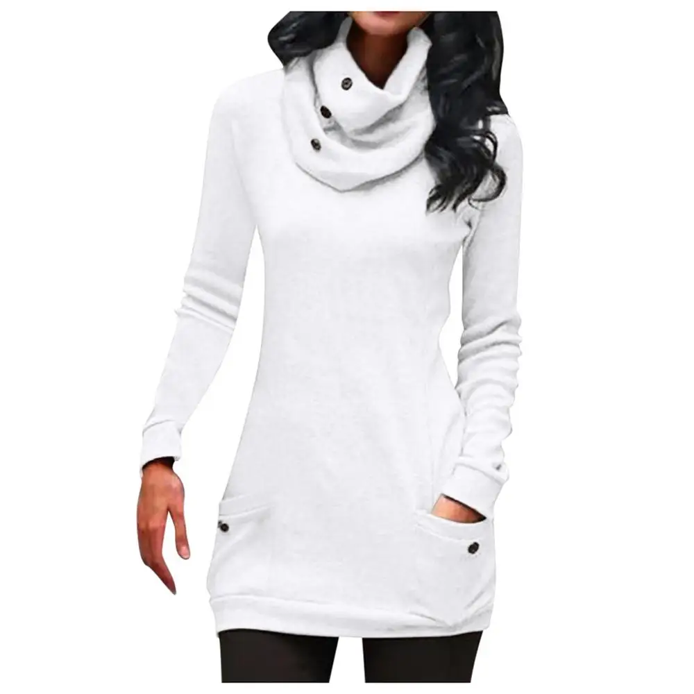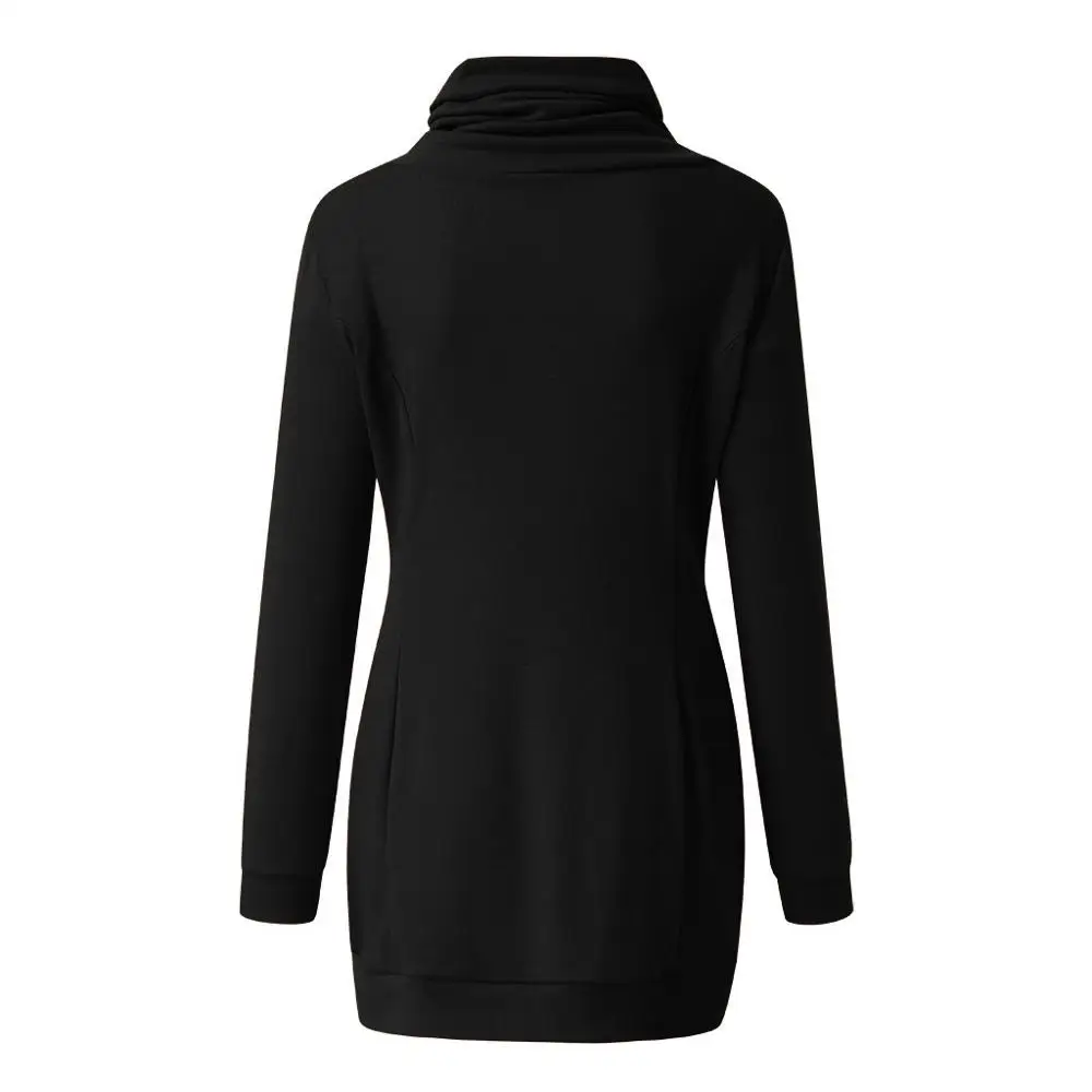 Теплая туника на пуговицах 2020, Повседневная зимняя Женская водолазка с высоким воротником, женские топы с длинным рукавом, пуловер
