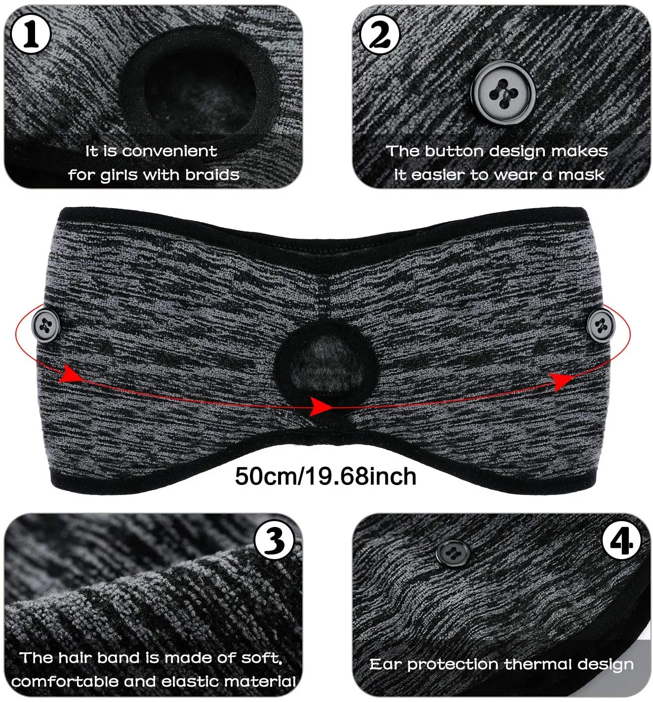 приятная не плотная флисовая повязка. отверстие для хвоста подходит для очень низкого хвоста если хвост делается ближе к макушке, то это уже будет за повязку. отверстие прошито никаких открыть и закрыть под волосами не предусмотрено. пришло быстро вместе с другими заказами