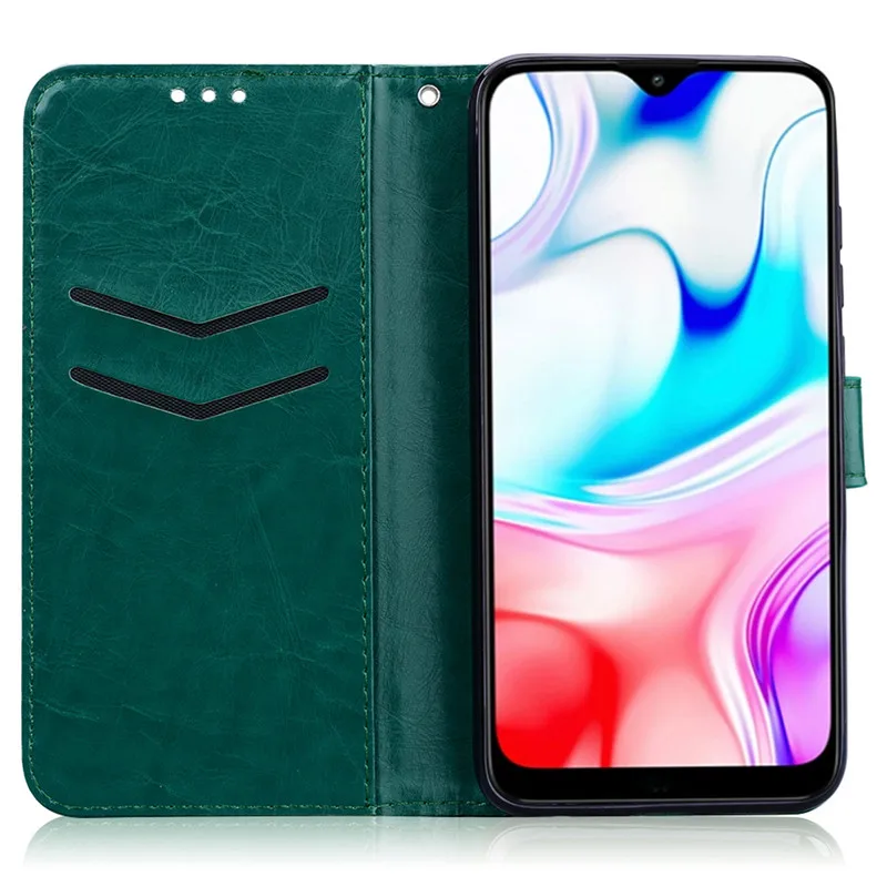 Чехол-книжка для Xiaomi Redmi 8, кожаный, с отделением для карт
