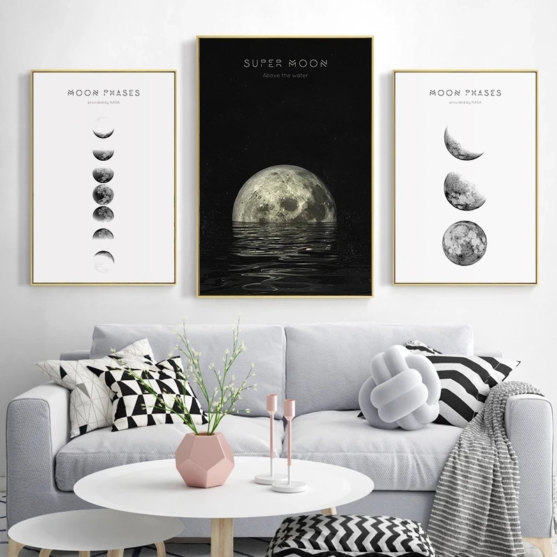 Настенная картина Луна в минималистическом стиле, настенные плакаты и принты в виде Луны, абстрактная живопись, декоративные картины в скандинавском стиле, Современный домашний декор