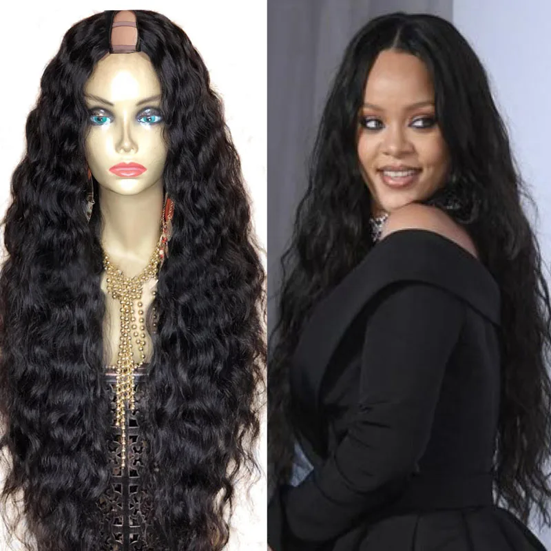Rihana, свободная волна, u-образный парик, человеческие волосы, 30 дюймов, 180% плотность, Перуанская машина, сделано без шнурков, парики для черных женщин