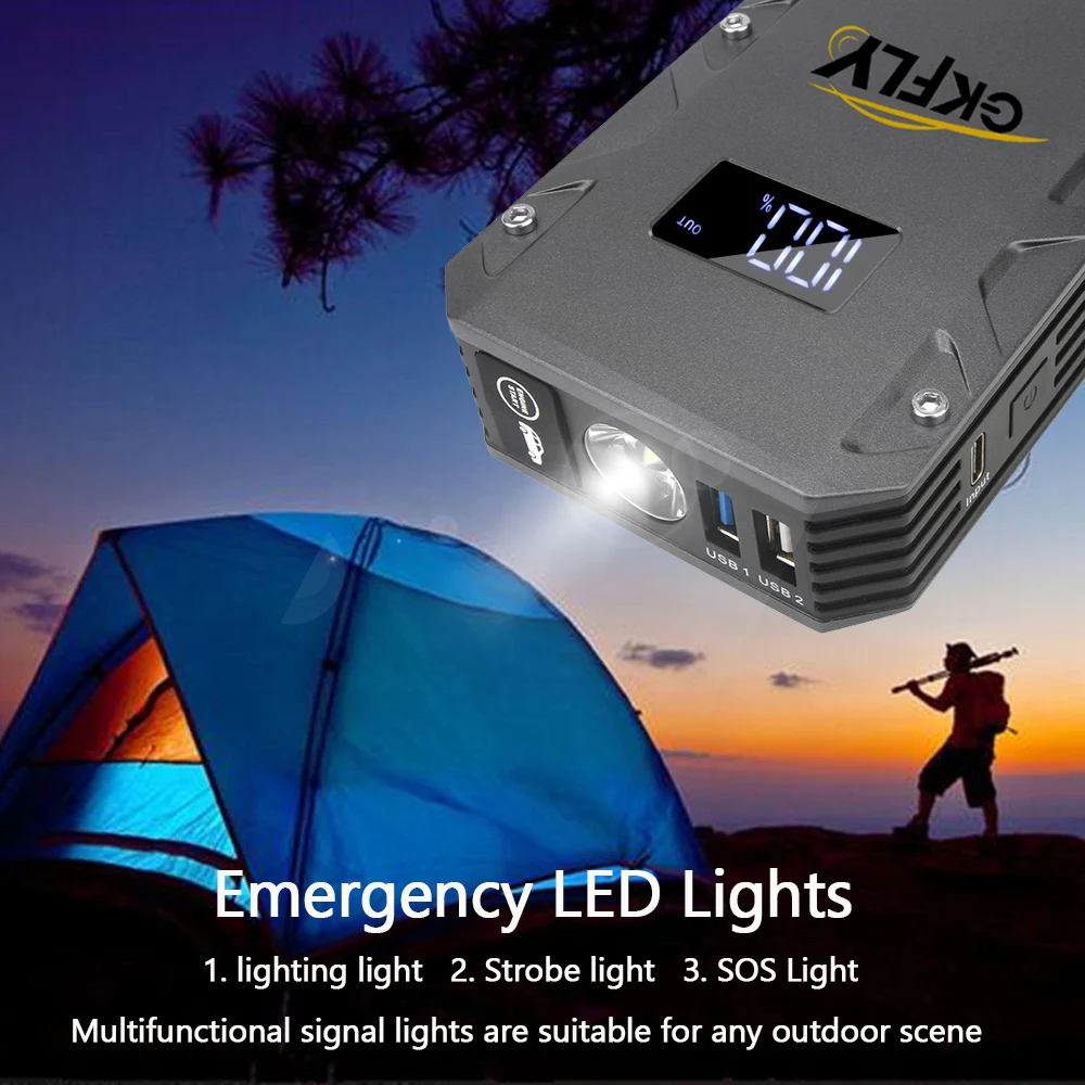 Пусковое устройство GKFLY для автомобиля, аварийное устройство для запуска зарядки аккумулятора, портативный внешний аккумулятор, автомобильное зарядное устройство 12 В