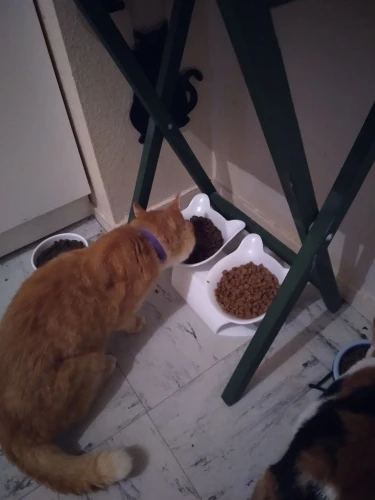 Немного пришлось потрудиться, чтобы закрепить миски в отверстия на подставке Чтобы помыть миску, придётся так же долго вытаскивать их оттуда. А так - неплохо выглядит, но пластик, мне кажется, цена немного завышена на него...